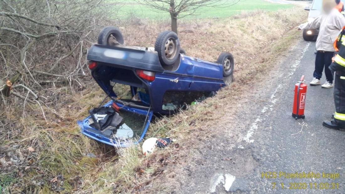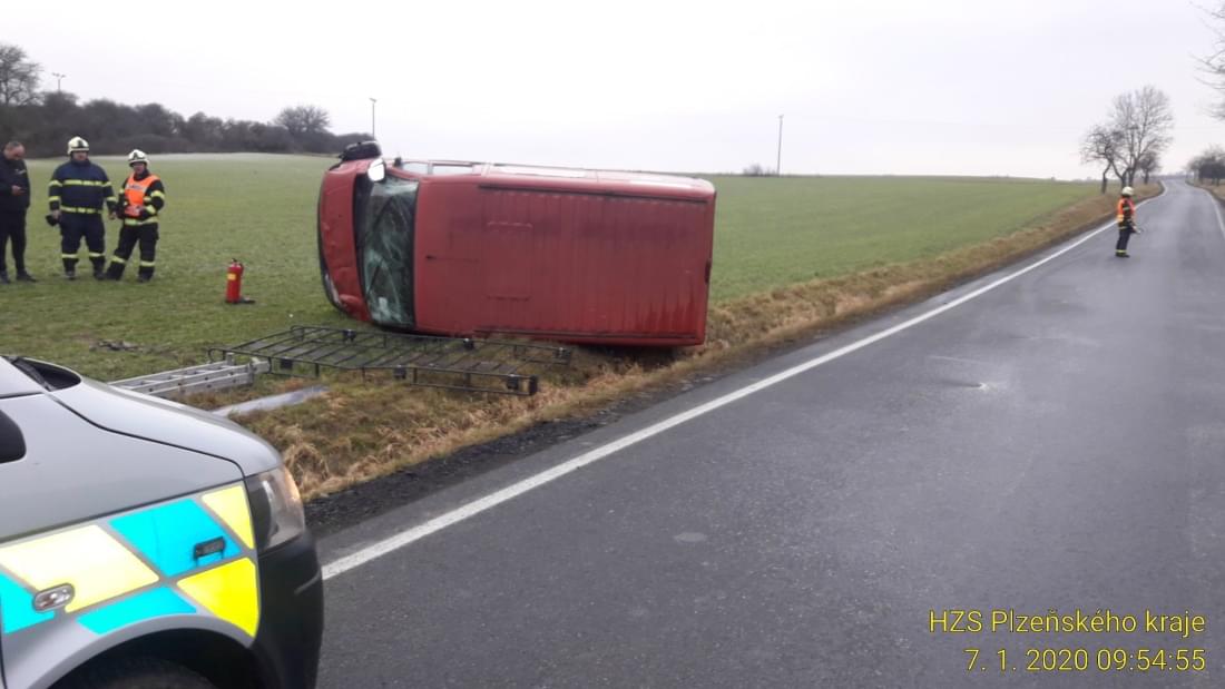 Kolem půl desáté havarovala mezi Blovicemi a Štítovem dodávka, která se převrátila mimo silnici. Na místo vyjeli policisté a hasiči, havárie se naštěstí obešla bez zranění.