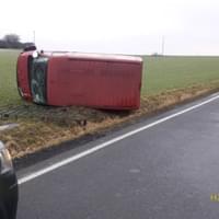 Kolem půl jedenácté došlo k havárii osobního vozu u rybníka Pozorka u Drahkova, kdy se vůz v příkopu převrátil na střechu. I tato nehoda se naštěstí obešla bez zranění řidičky, které následně hasiči vůz z příkopu vyprostili.