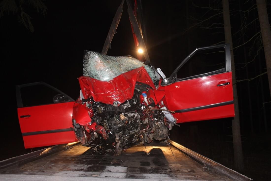 Hned na první pohled bylo vidět, že strašlivý náraz do vzrostlého stromu nemohl řidič, který ve voze naštěstí cestoval sám, přežít. Kusy vozidla nacházeli policisté rozmetané desítky metrů daleko od vraku.