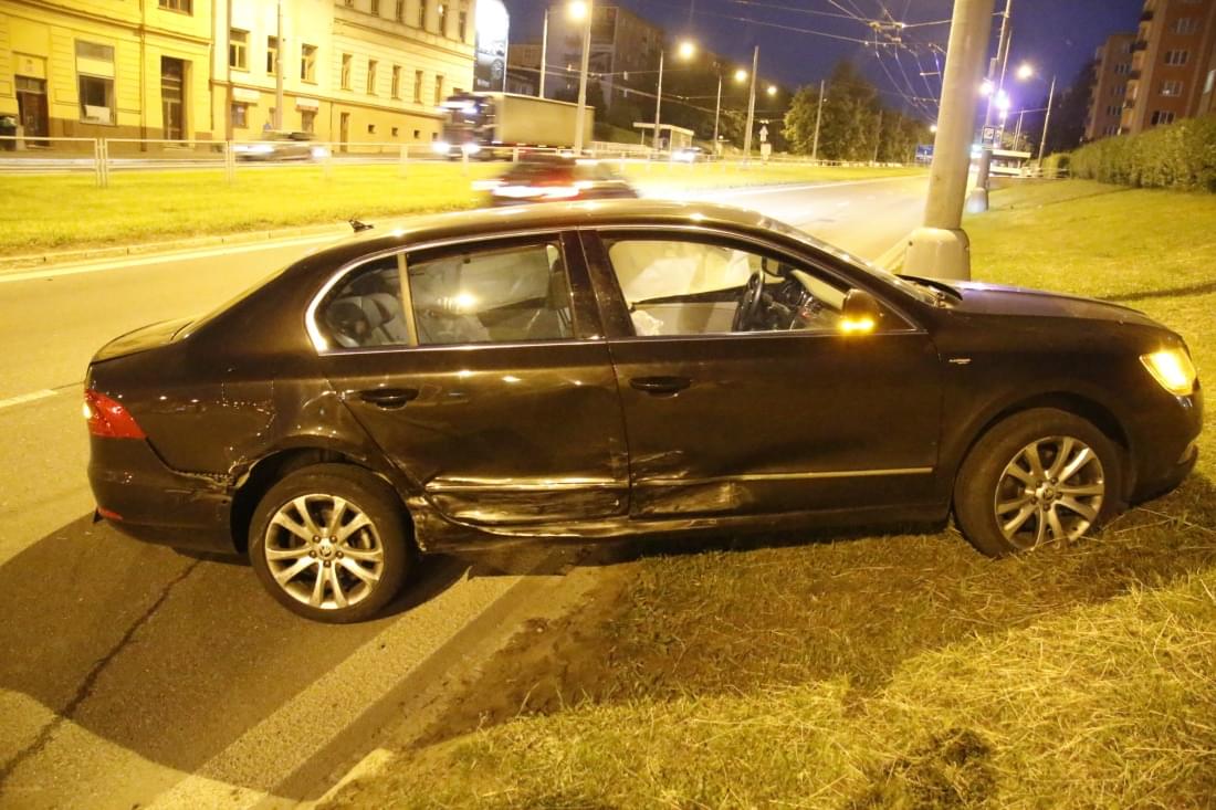 Řidič černého Superbu dle všeho přehlédl červenou a vjel do křižovatky, kde se střetl s Peugeotem 306. Jeho vůz byl pak odmrštěn na semafor, který přerazil a nakonec skončil mimo vozovku.