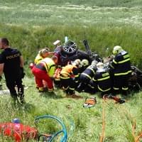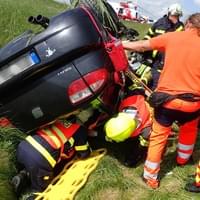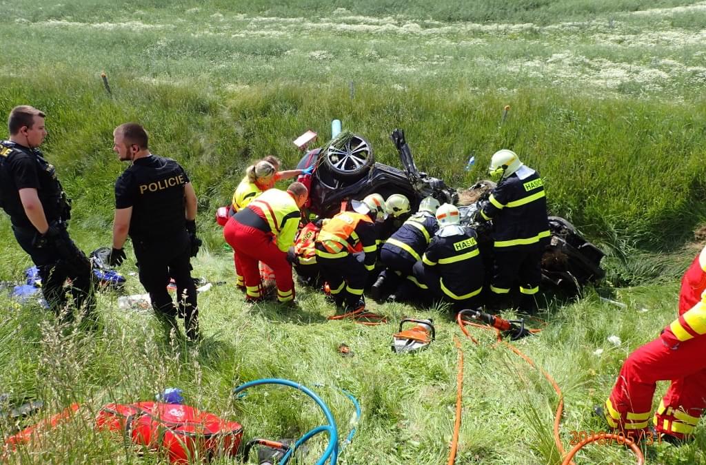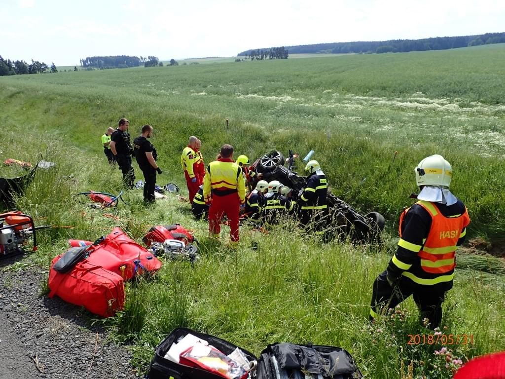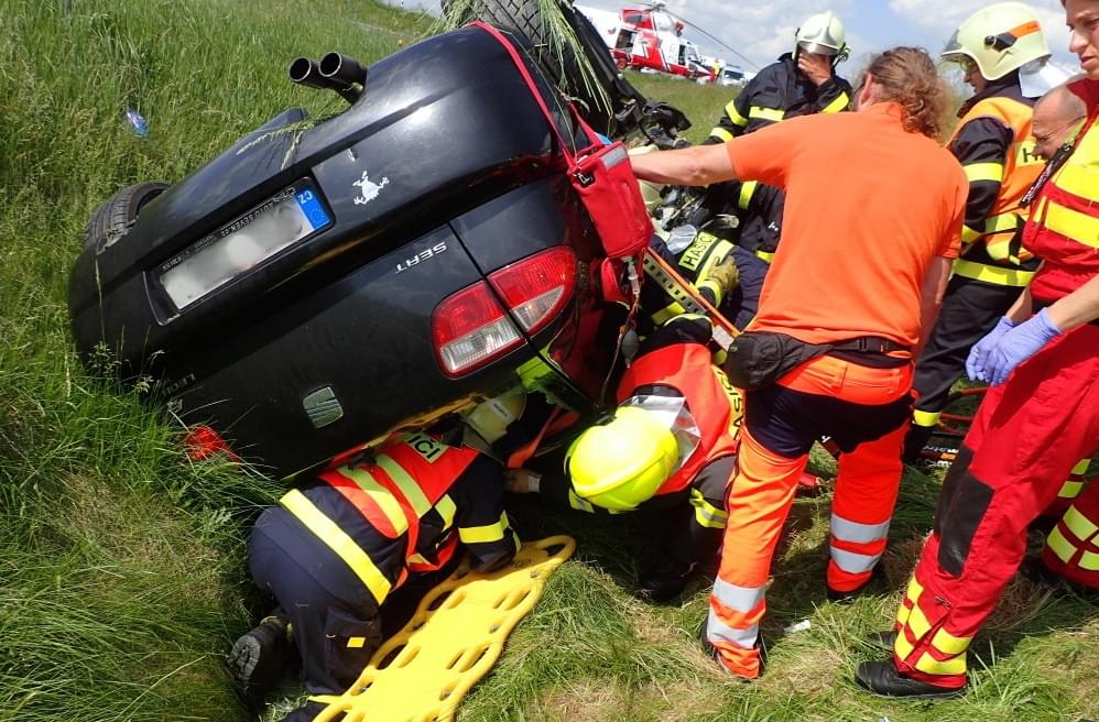 Došlo ke střetu vozů, vozidlo Seat se po nárazu několikrát převrátilo a skončilo na střeše v příkopu. Řidiče Seatu i jeho mladou spolujezdkyni museli z vraku vyprostit a následně letecky transportovat do nemocnice.