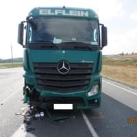 Při dopravní nehodě utrpěli řidič osobního automobilu a jeho spolujezdkyně zranění. Požití alkoholických nápojů před jízdou bylo u obou řidičů vyloučeno dechovými zkouškami elektronickým přístrojem. Na osobním automobilu Dacia vznikla škoda ve výši 100 tisíc korun, na nákladním vozidle Mercedes byla škoda vyčíslena na 400 tisíc korun.