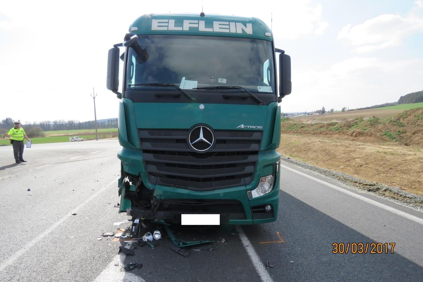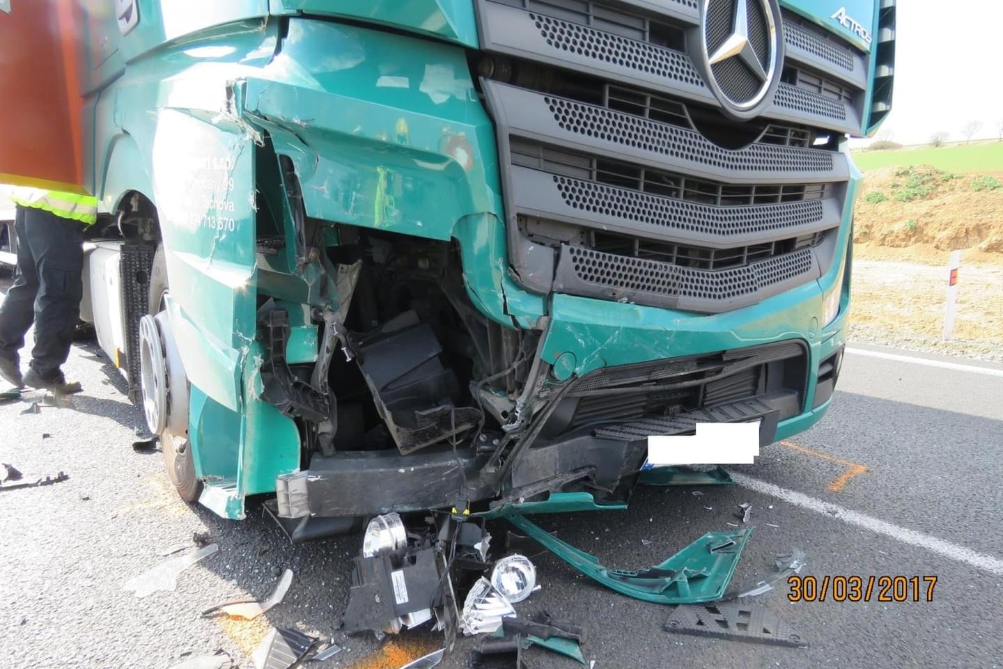 Při dopravní nehodě utrpěli řidič osobního automobilu a jeho spolujezdkyně zranění. Požití alkoholických nápojů před jízdou bylo u obou řidičů vyloučeno dechovými zkouškami elektronickým přístrojem. Na osobním automobilu Dacia vznikla škoda ve výši 100 tisíc korun, na nákladním vozidle Mercedes byla škoda vyčíslena na 400 tisíc korun.