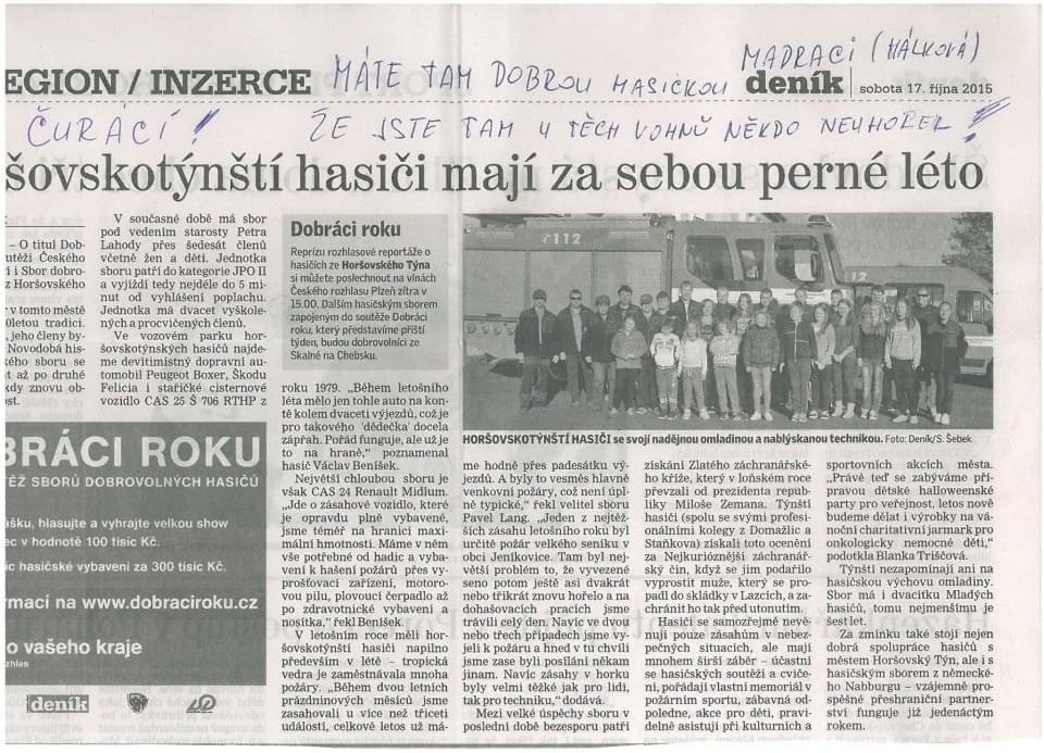 V Horšovském Týně jsou na své „dobrovolníky“ po právu hrdí, vždyť už je tam také mají 142 let. Jako všichni hasiči v naší zemi si toto léto pořádně sáhli až na dno a podíleli se na likvidaci více než třiceti požárů z veder.