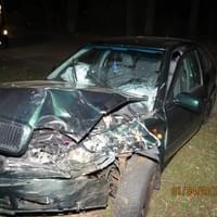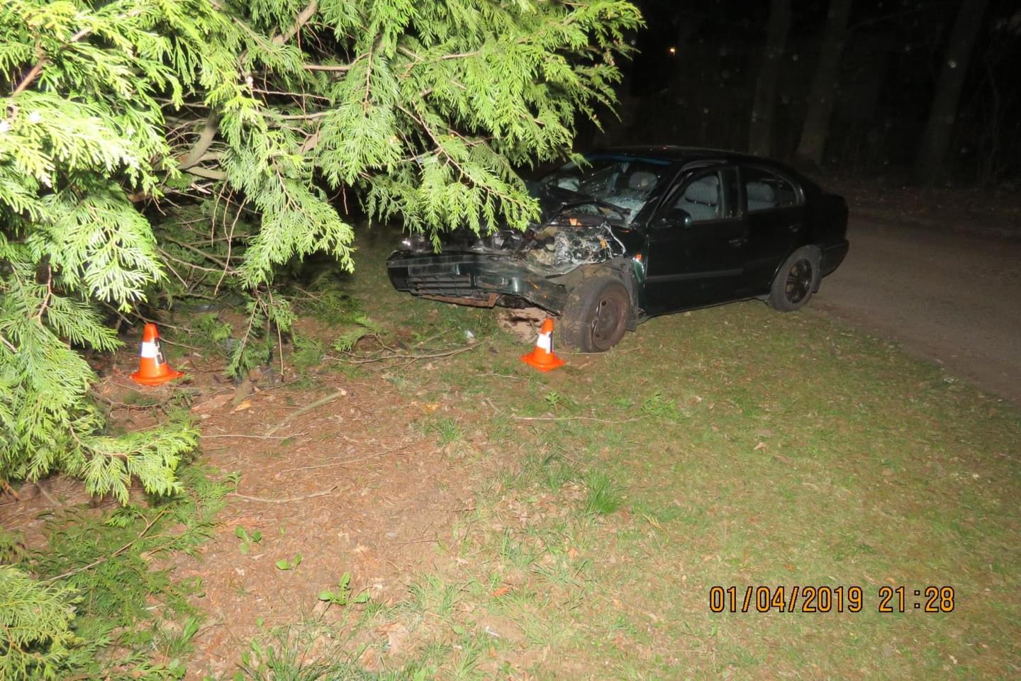 Muž s vozidlem vyjel vpravo mimo silnici, kde narazil do stromu a utrpěl lehké zranění.
