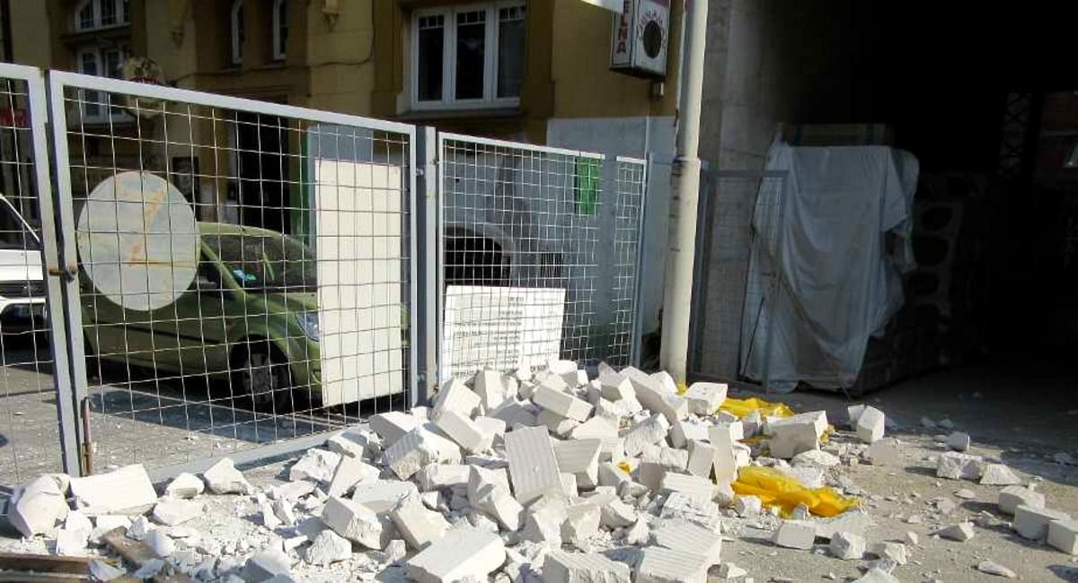 Dnes ráno po osmé hodině došlo v Plzni na stavbě projektu Zlatá Belánka k pádu celého nákladu pórobetonových tvárnic přenášených jeřábem. Tvárnice se vysypaly z více než dvacetimetrové výšky do Zámečnické ulice, kde naštěstí odletující kusy poškodily pouze vozidlo, ale nezasáhly žádného člověka.