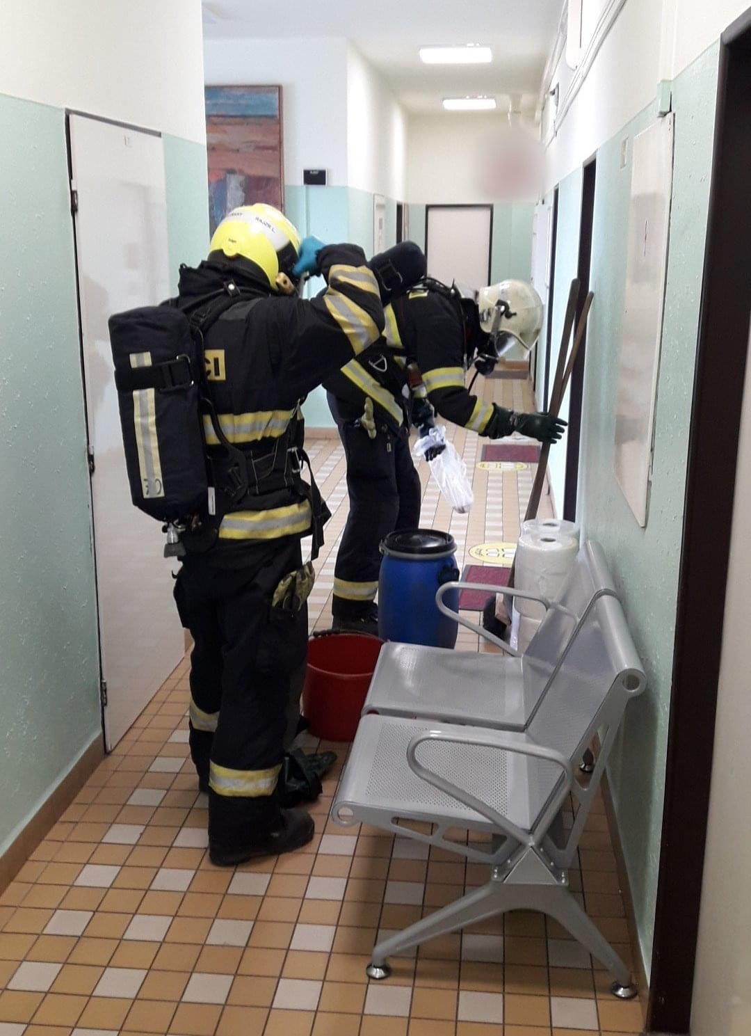 "Došlo k prasknutí pětilitrového barelu, ve kterém byl uskladněn dezinfekční prostředek Persteril. Tento dezinfekční prostředek silně čpí a proto byly z budovy evakuovány osoby," uvedl nám k případu tiskový mluvčí hasičů.