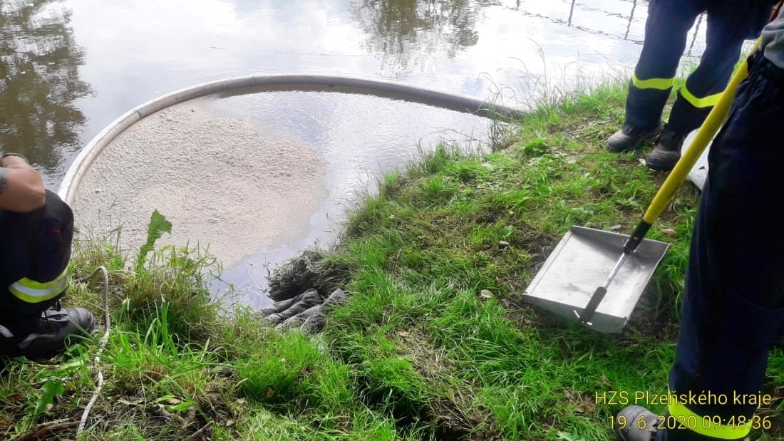 Únik na komunikaci hasiči zlikvidovali sorbentem a na vodní hladinu instalovali sorpční hady. Na místo se dostavili zástupci obce a odboru životního prostředí, kteří budou koordinovat následující postup při řešení následků úniku.