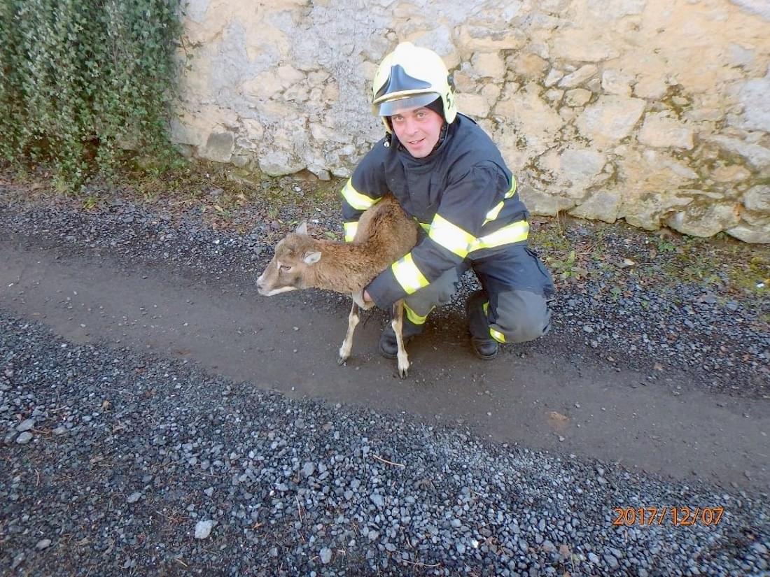 Podle zasahujících hasičů se ale malý rošťák nechtěl rozloučit bez památky na své dobrodružství a hasič, který se o muflonka nejvíc staral, si tak na zásahovém oděvu odnesl "dárek".