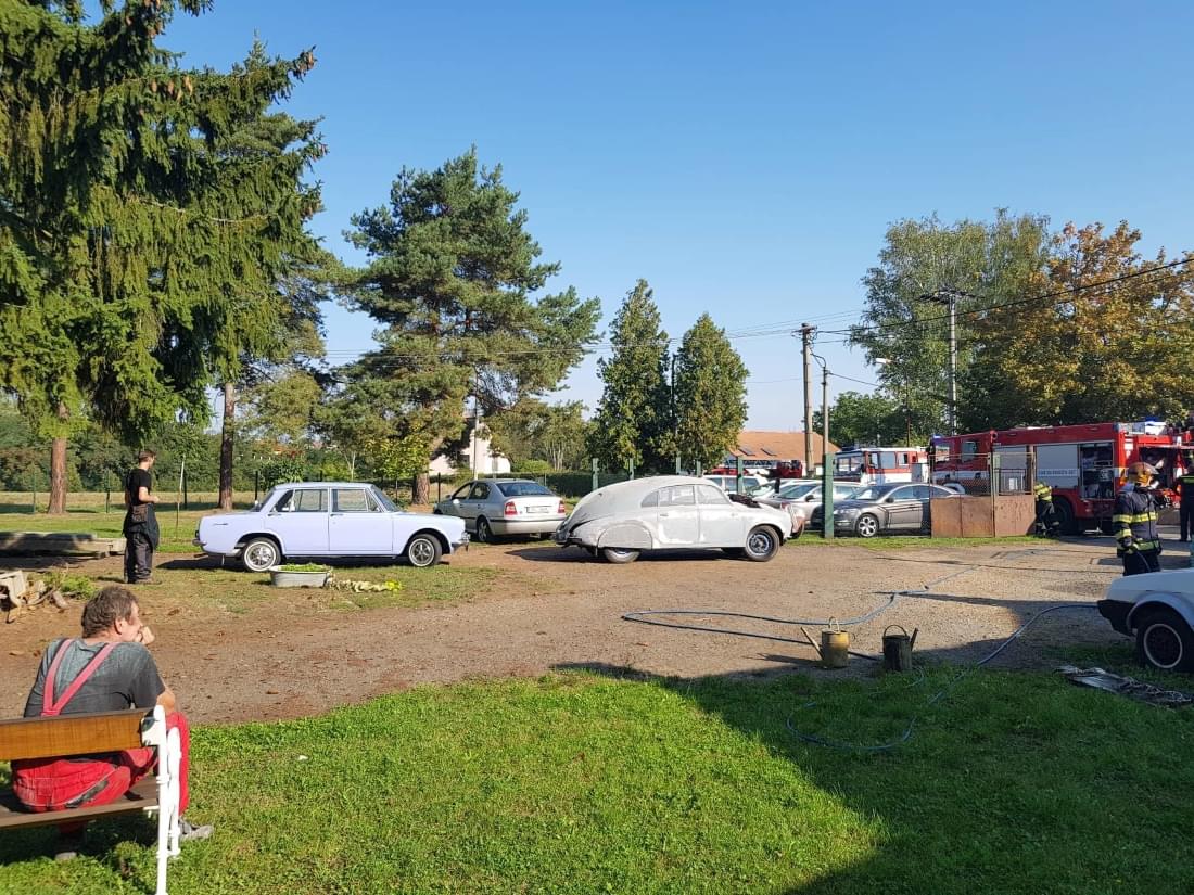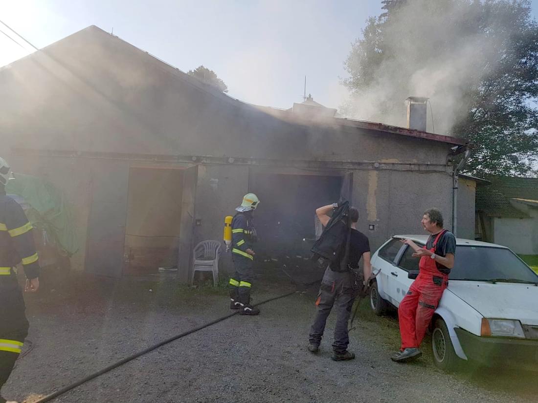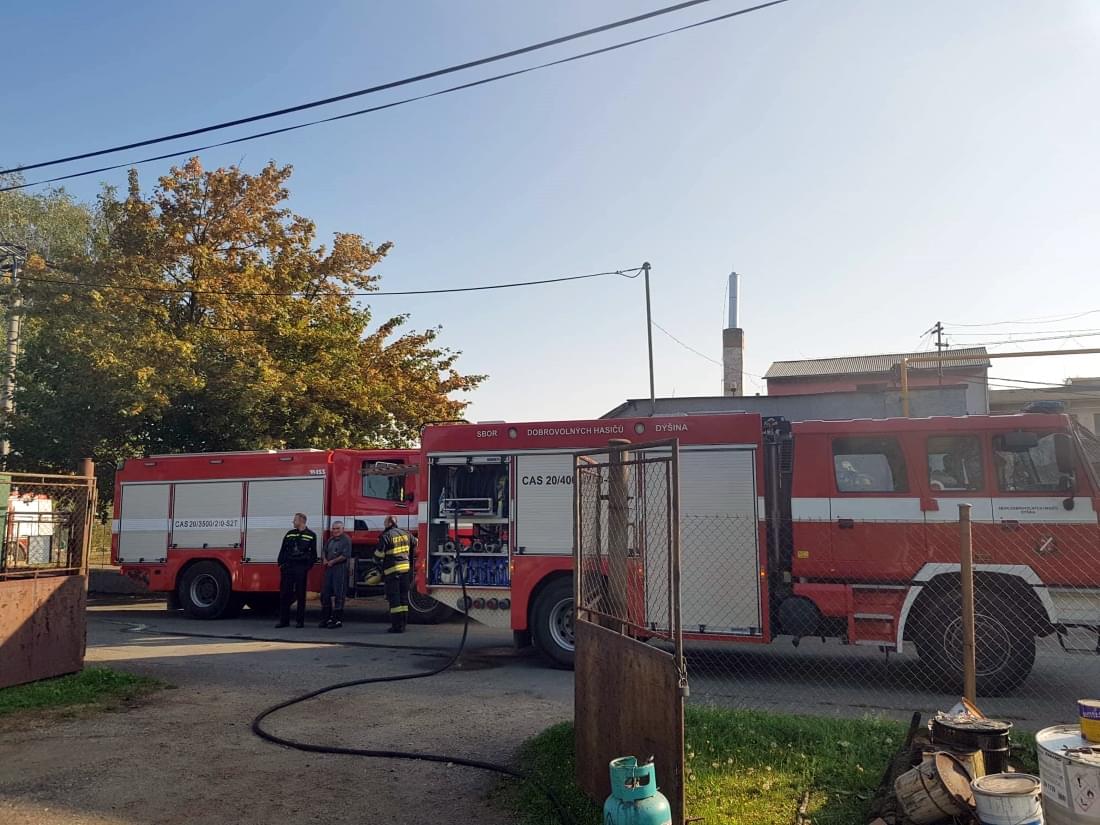 Dnes po deváté hodině dopoledne došlo k požáru v Dýšině, v objektu dvougaráže, ve které je zřízena autolakovna.
