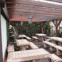 Operační středisko vyslalo plzeňské jednotky HZS Střed, Košutka a SDH Skvrňany na náměstí T. G. Masaryka kpožáru domu. Průzkumem hasiči zjistili, že se jedná opožár pergoly na dvoře restauračního zařízení. Požár napáchal škody za 20tisíc korun, uchráněné hodnoty se odhadují na 200tisíc. Příčina vzniku požáru se vyšetřuje, nebyl vyloučen aniúmysl.