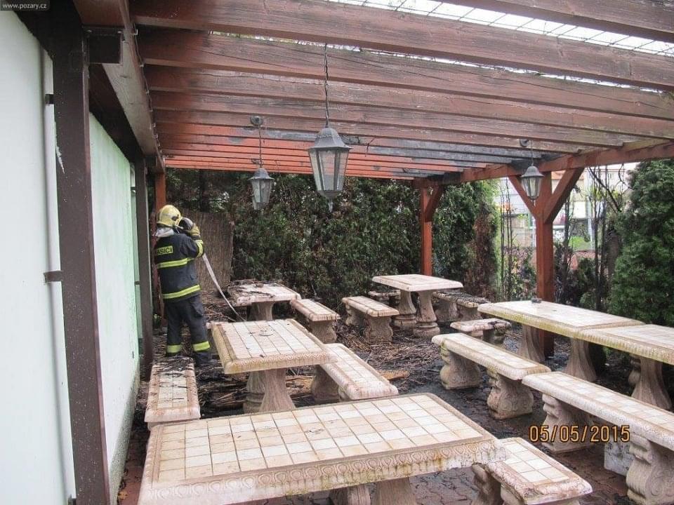 Operační středisko vyslalo plzeňské jednotky HZS Střed, Košutka a SDH Skvrňany na náměstí T. G. Masaryka kpožáru domu. Průzkumem hasiči zjistili, že se jedná opožár pergoly na dvoře restauračního zařízení. Požár napáchal škody za 20tisíc korun, uchráněné hodnoty se odhadují na 200tisíc. Příčina vzniku požáru se vyšetřuje, nebyl vyloučen aniúmysl.