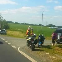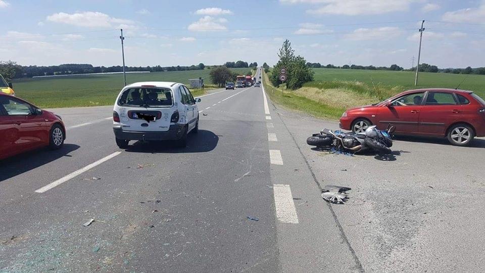 Záchranáři dnes krátce po půl třetí zasahovali u dopravní nehody osobního automobilu a motocyklu u Hunčic.