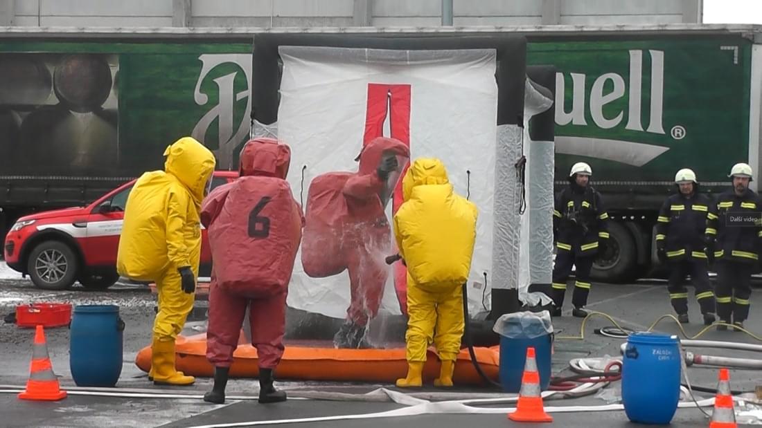Součástí nácviku bylo také prověření automatických systémů varování osob v areálu podniku a činnosti ostrahy podniku v případě spuštění poplachu.“