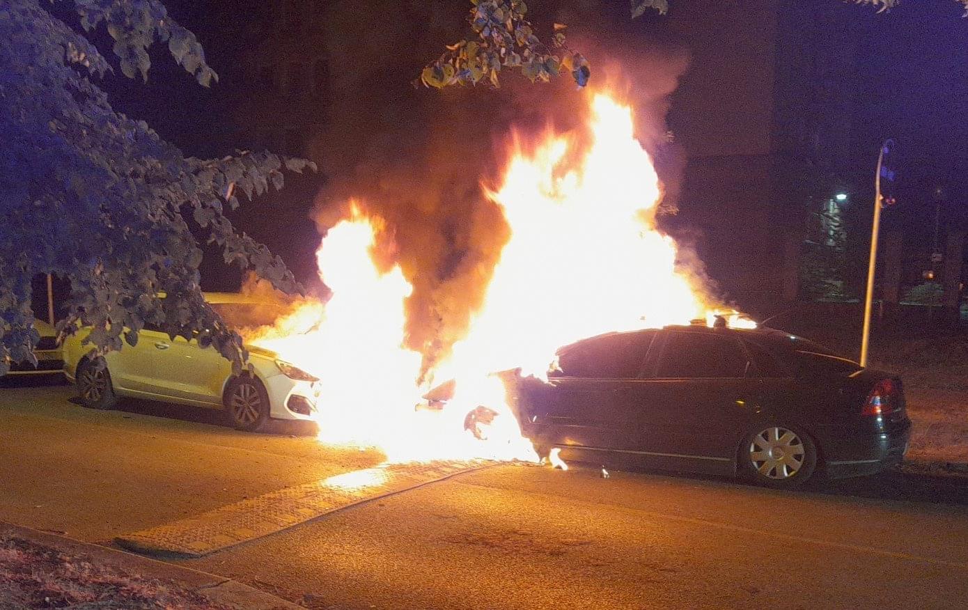 V noci na dnešek po druhé hodině vyjížděli hasiči do Brojovy ulice v Plzni na Slovanech k požáru dvou osobních vozů. Plameny zde zachvátily dvě auta zaparkovaná u sebe a ještě před příjezdem hasičů stačil oba vozy oheň téměř zničit.