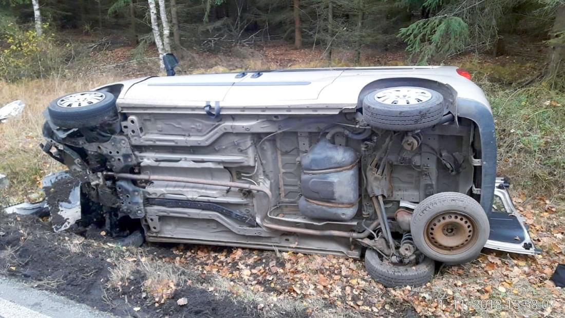 Před čtvrtou hodinou odpoledne pak došlo k havárii osobního vozu v Pňovanech, Chotěšovičkách, kde se vozidlo převrátilo přes střechu a havarovalo v příkopu.