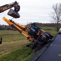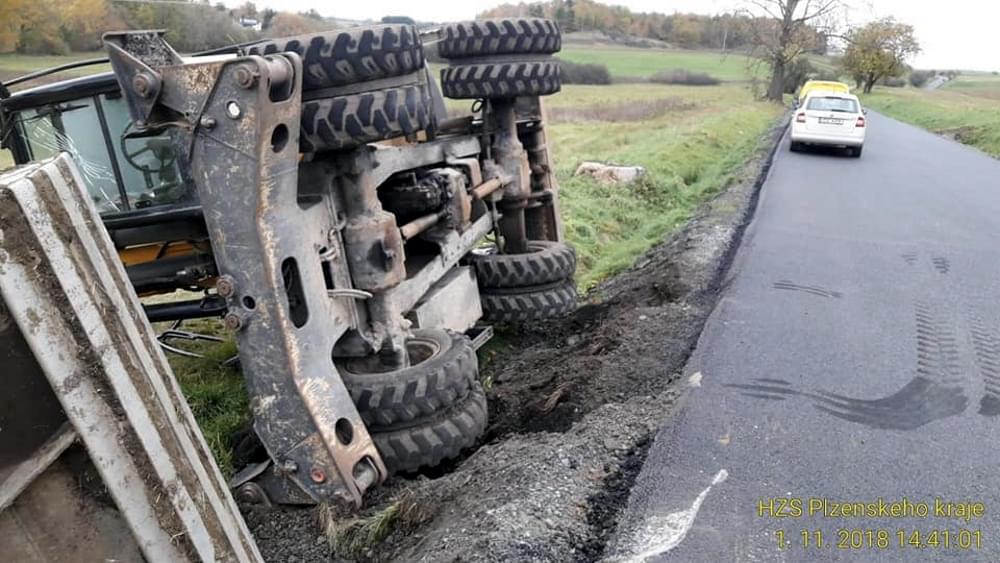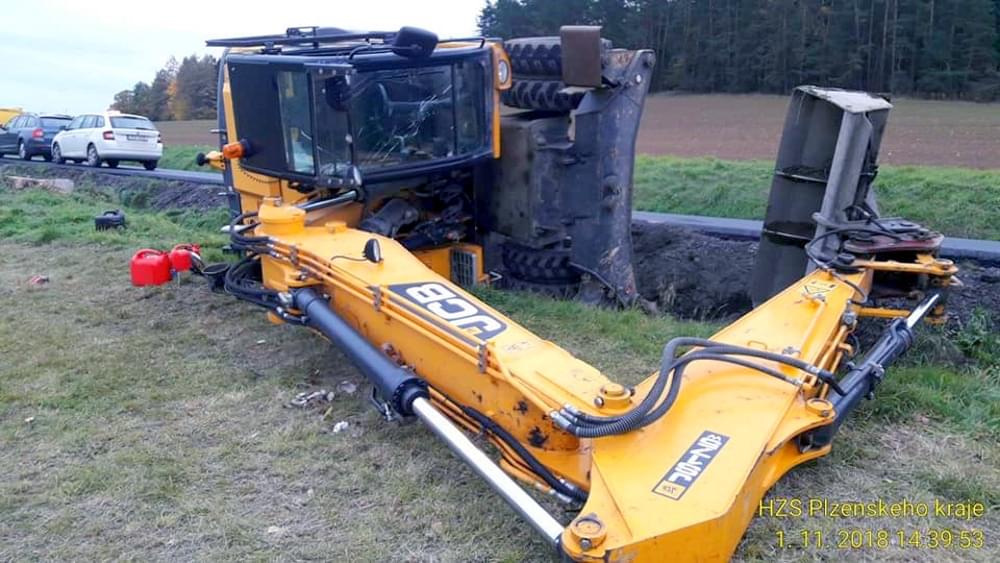 Na silnici nedaleko Čečovic se dnes po druhé hodině odpoledne utrhla krajnice pod bagrem a ten se převrhl mimo komunikaci.