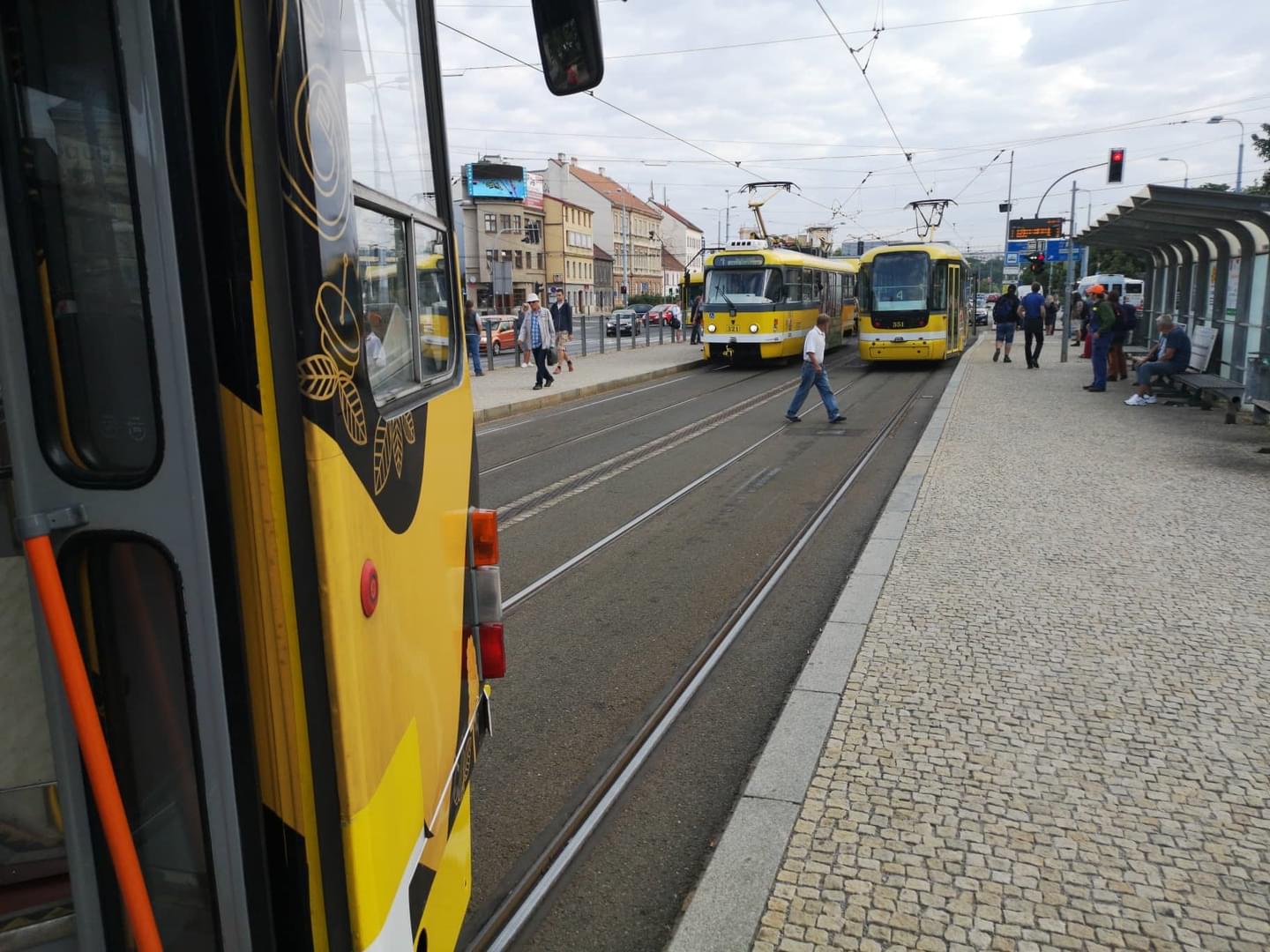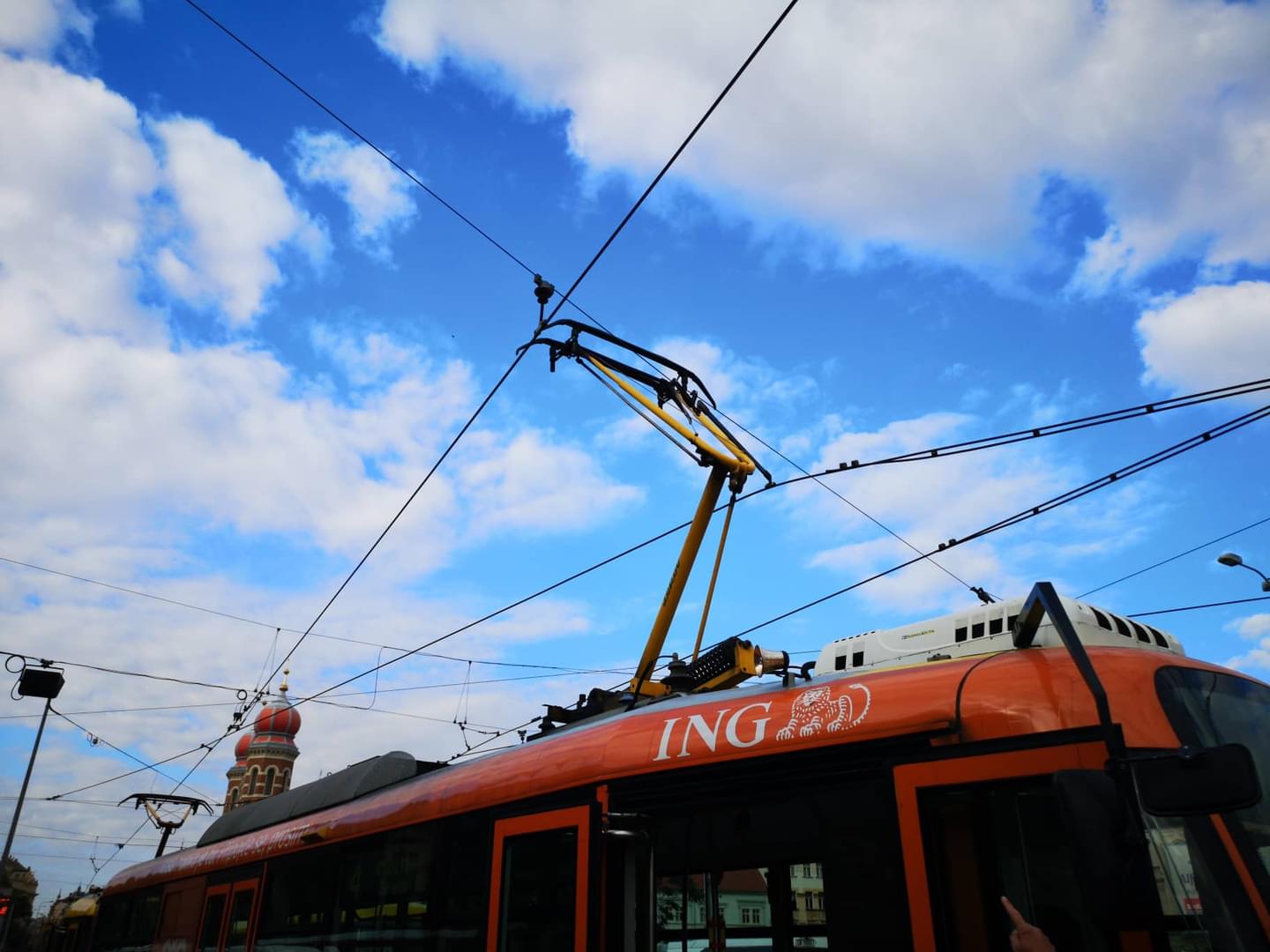AKTUALIZACE: Jeřáb umístil tramvaj zpět na koleje a doprava byla obnovena.