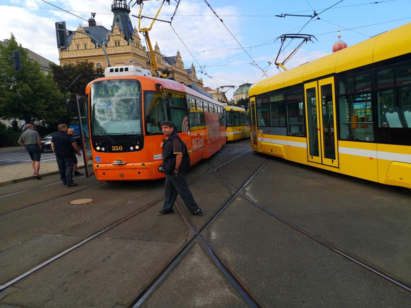 Dnes kolem půl osmé ráno došlo v Sadech Pětatřicátníků v Plzni k dopravní nehodě několika tramvají.Řidič tramvaje linky číslo 4 jedoucí směrem na Lochotín si pravděpodobně nevšiml výhybky přehozené směrem na Skvrňany a místo jízdy rovně začala souprava odbočovat vlevo, přičemž narazila do boku protijedoucí tramvaje. Přitom došlo k vykolejení jedné z tramvají a rozbití několika oken. Nehoda se naštěstí obešla bez zranění, ale škoda na tramvajích je značná.