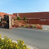 K havárii nákladního vozu se dřevem došlo v pondělí 26. července před devátou hodinou ráno v Dolní Lukavici na objízdné trase z Přeštic na Plzeň. "Při projíždění levotočivé zatáčky došlo převrácení přívěsu se dřevem nákladního vozu, vysypání nákladu na přilehlý chodník a poražení oplocení rodinného domu," popsala tisková mluvčí policie. Klády z převráceného vleku se rozsypaly přes travnatý pás a chodník, až prorazily dřevěné oplocení.