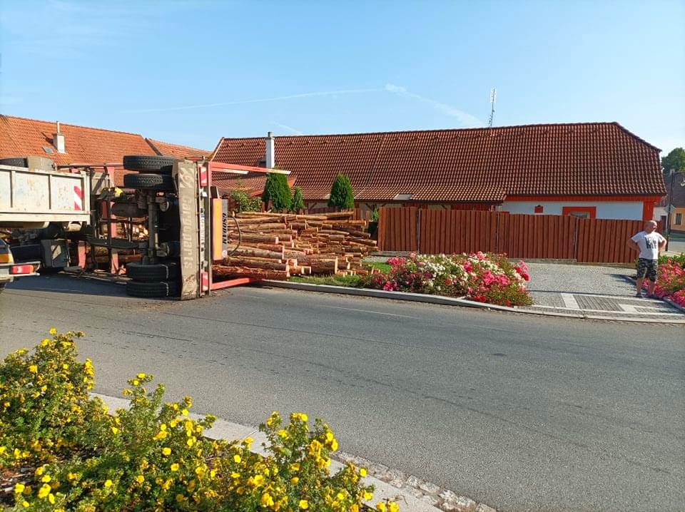 K havárii nákladního vozu se dřevem došlo v pondělí 26. července před devátou hodinou ráno v Dolní Lukavici na objízdné trase z Přeštic na Plzeň. "Při projíždění levotočivé zatáčky došlo převrácení přívěsu se dřevem nákladního vozu, vysypání nákladu na přilehlý chodník a poražení oplocení rodinného domu," popsala tisková mluvčí policie. Klády z převráceného vleku se rozsypaly přes travnatý pás a chodník, až prorazily dřevěné oplocení.