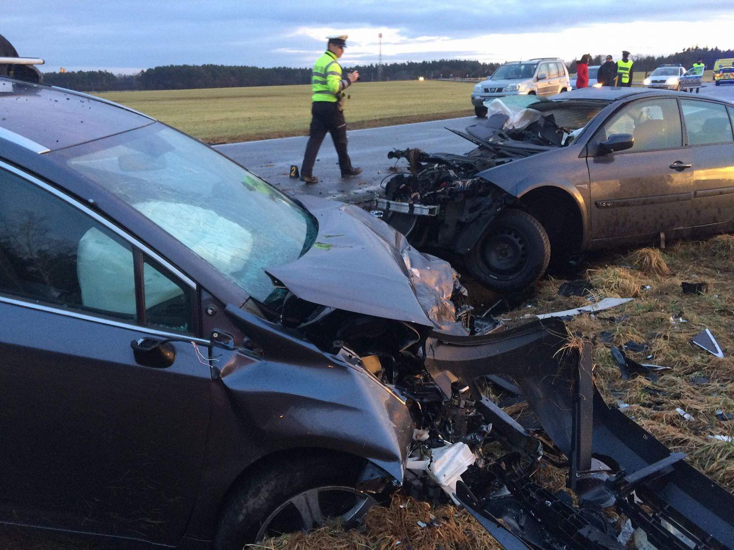 "Pravděpodobný viník jedoucí ve vozidle Renault narozený v roce 1993 zřejmě nepřizpůsobil rychlost a střetl se s vozem Toyota Avensis, ve kterém cestoval muž narozený v roce 1981, se kterým ve voze cestovalo dítě narozené 2012," uvedla tisková mluvčí policie.