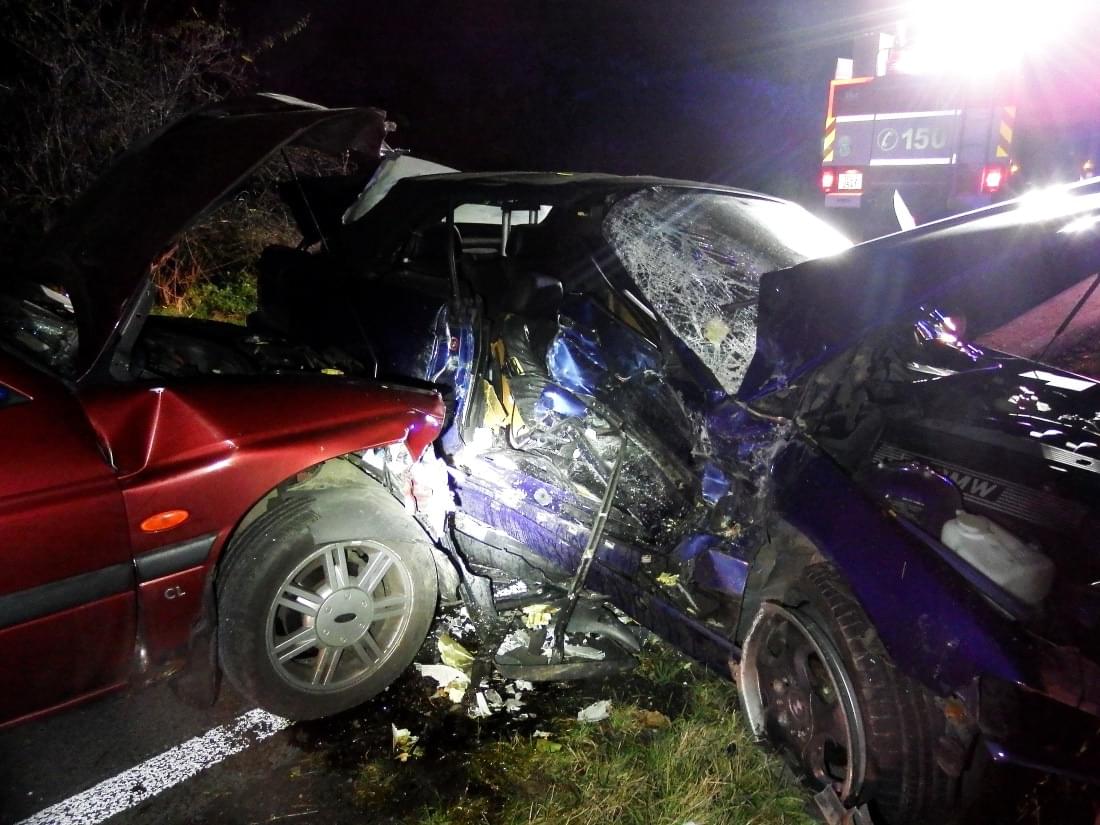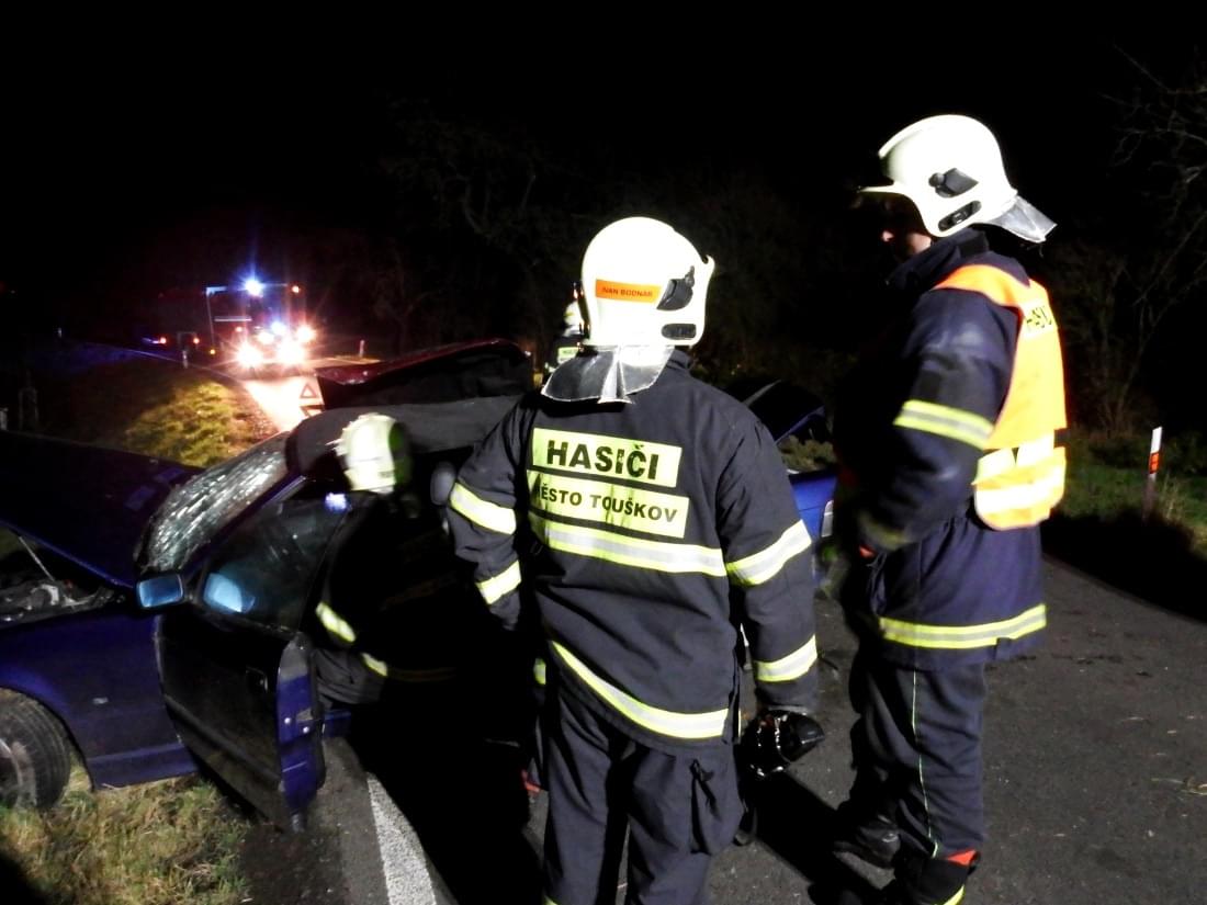 Před šestou hodinou večer došlo na silnici mezi Malesicemi a Městem Touškov k vážné dopravní nehodě. Řidič vozu BMW jel od Malesic na Touškov, dostal podle všeho smyk, vyjel vpravo mimo vozovku, na kterou ho svah odrazil zpět, a poté se pravým bokem střetl s protijedoucím vozem Ford.