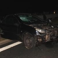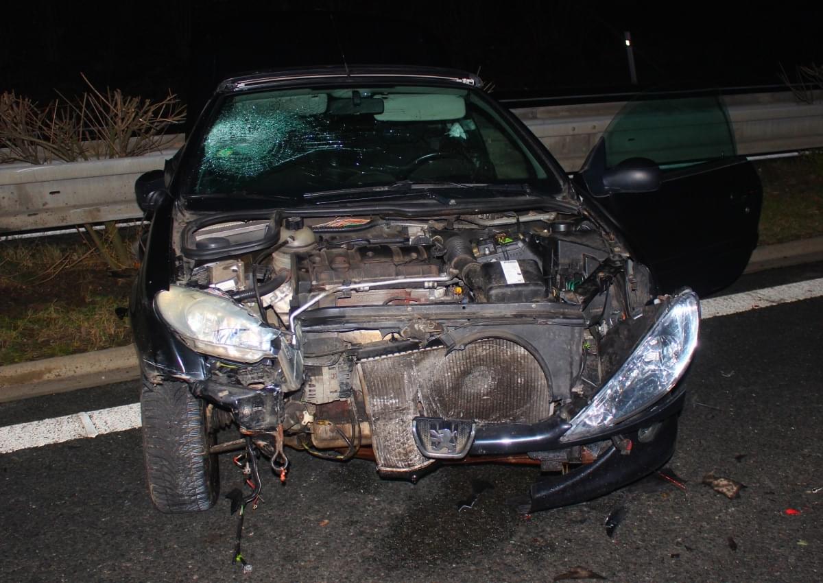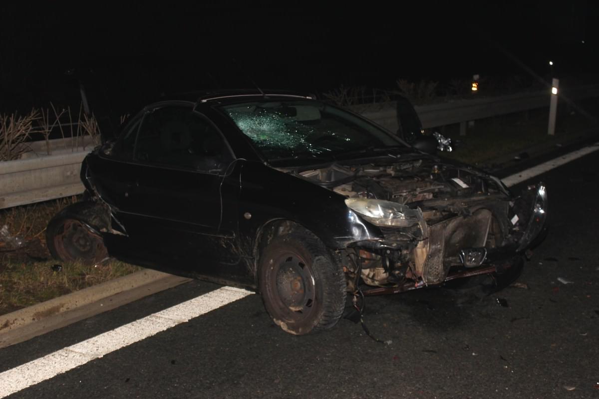 Peugeot 206 jedoucí na Plzeň v levém pruhu srazil divoké prase, ve voze v té době cestoval muž se ženou, muž narozený v roce 1997 vystoupil a šel umístit trojúhelník na vozovku. V té samé době začala v odstavném pruhu zastavovat rozblikaná auta, jejichž posádky nabízely pomoc. Dle svědků bylo vše viditelné a přehledné i na větší vzdálenost, další vozidla pak jezdila pravým pruhem.