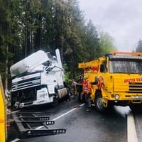 Vyproštění kamionu je prováděno dnes od sedmi hodin. Provoz na silnici je zcela uzavřen, pro nákladní vozidla je stanovena objízdná trasa na Všeruby. Pro osobní vozidla je stanovena objízdná trasa na Lískovou. Ve Spolkové republice Německo je doprava rovněž odkláněna.