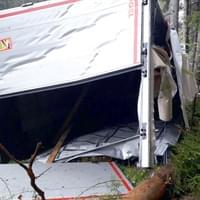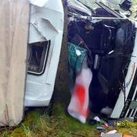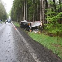14 h Dnes celý den probíhá vyprošťování a úklid místa havárie. Vyprošťovací práce komplikuje vytrvalý déšť a utržené řízení tahače. Návěs tak bude nutné ještě ručně přeložit a vytáhnout pomocí jednoho z vyprošťovacích vozidel.