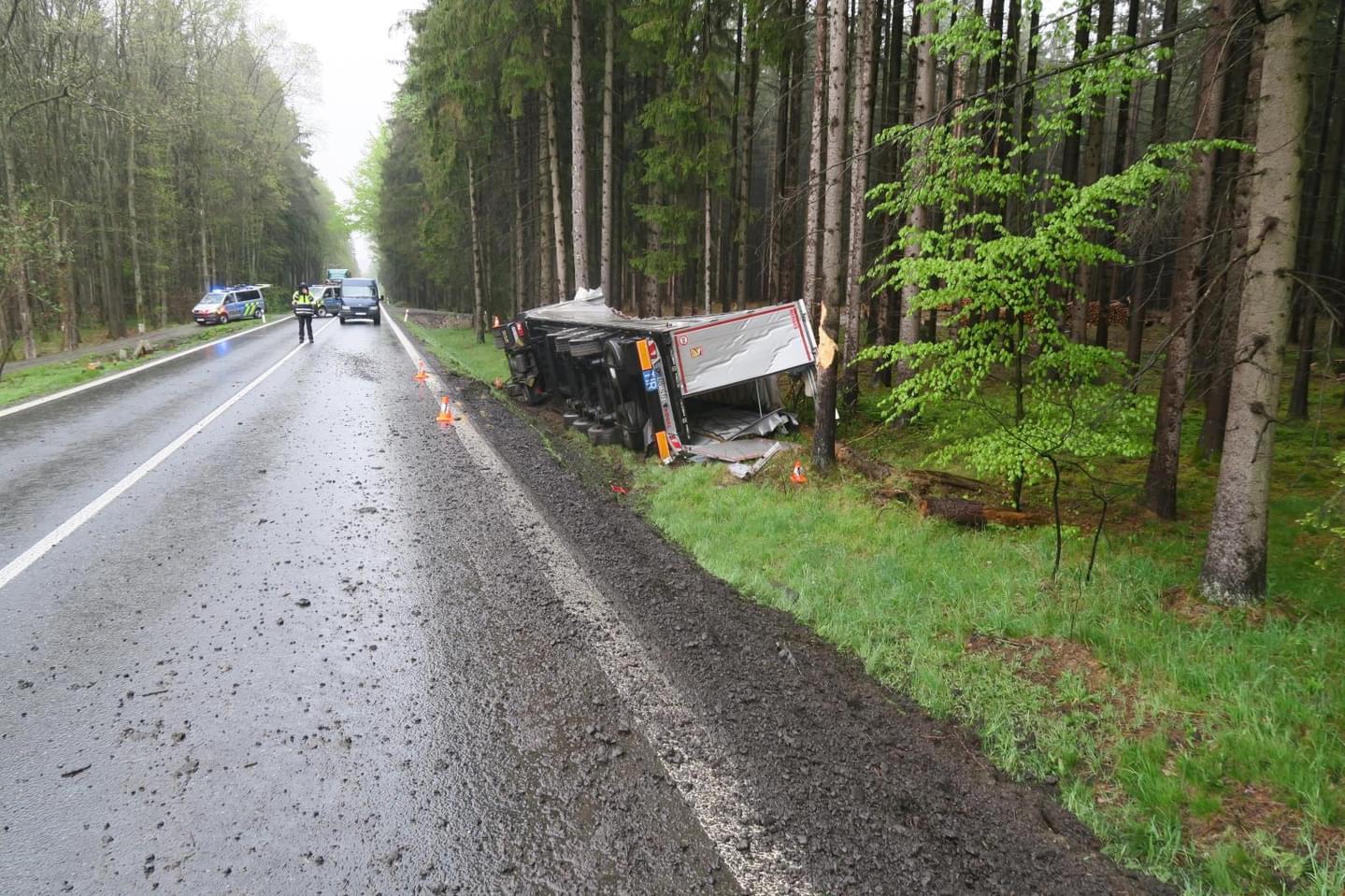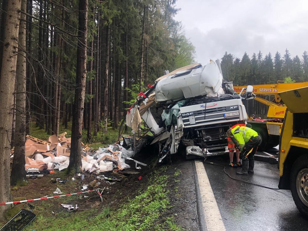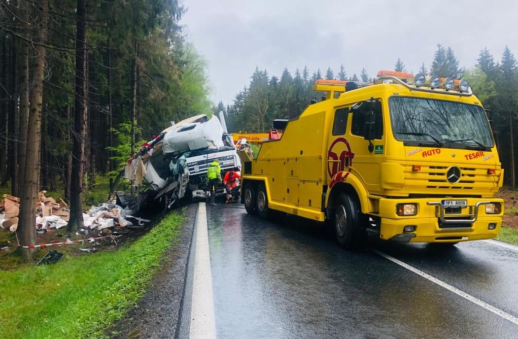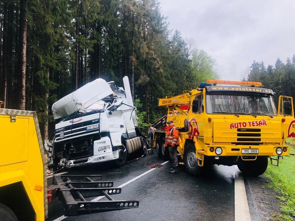 Vyproštění kamionu je prováděno dnes od sedmi hodin. Provoz na silnici je zcela uzavřen, pro nákladní vozidla je stanovena objízdná trasa na Všeruby. Pro osobní vozidla je stanovena objízdná trasa na Lískovou. Ve Spolkové republice Německo je doprava rovněž odkláněna.