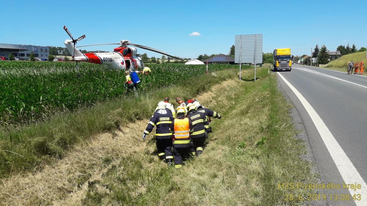"Z místa dopravní nehody letecky transportovali ženu ve věku asi čtyřicet a nezletilou dívku na urgentní příjem Fakultní nemocnice Plzeň z důvodu mechanismu nehody, obě ženy byly při vědomí. Ženu ve věku asi 35 let jsme transportovali pozemní cestou do Fakultní nemocnice Plzeň a muže ve věku asi 38 let také pozemní cestou do Stodské nemocnice - oba mají lehká až středně těžká poranění a jsou při vědomí," uvedli záchranáři.