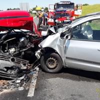 K vážné dopravní nehodě došlo dnes před jednou hodinou odpoledne mezi Staňkovem a Ohučovem, kde se čelně střetly dva osobní vozy.