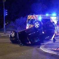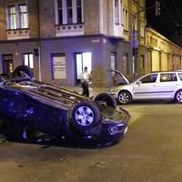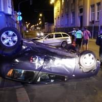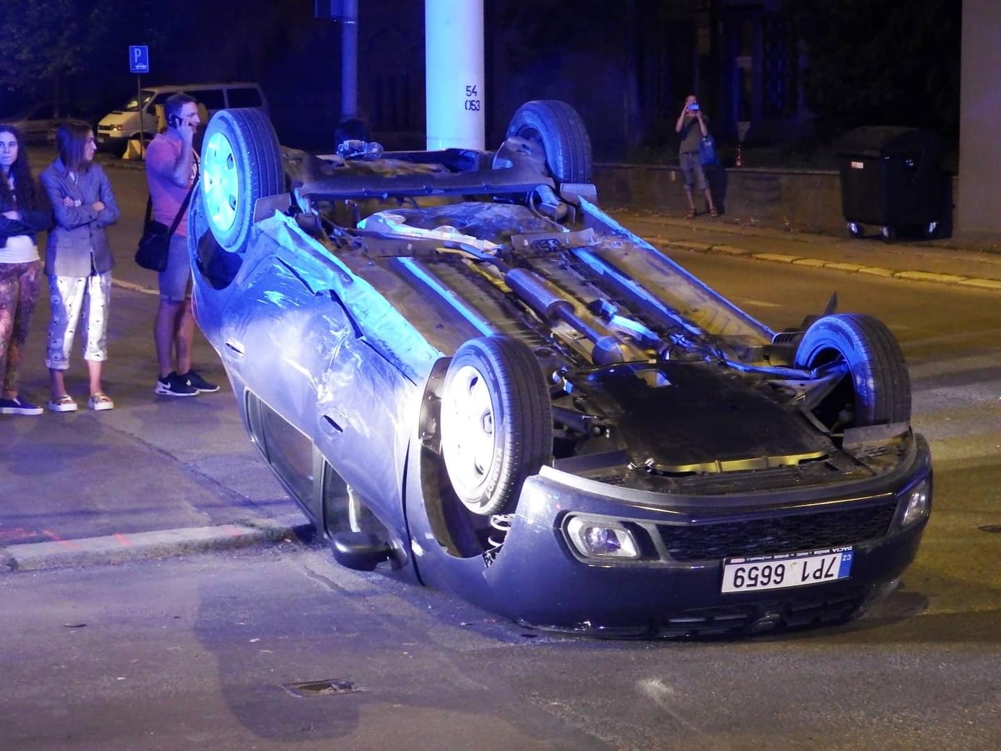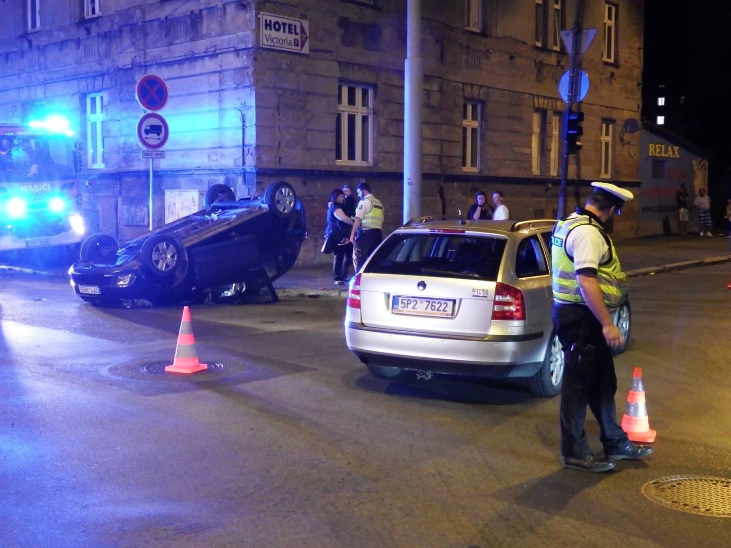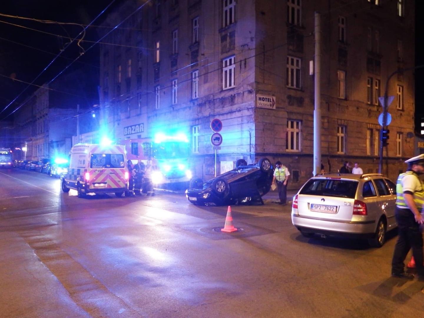 osobních vozů, kdy po střetu zůstal jeden vůz převrácený