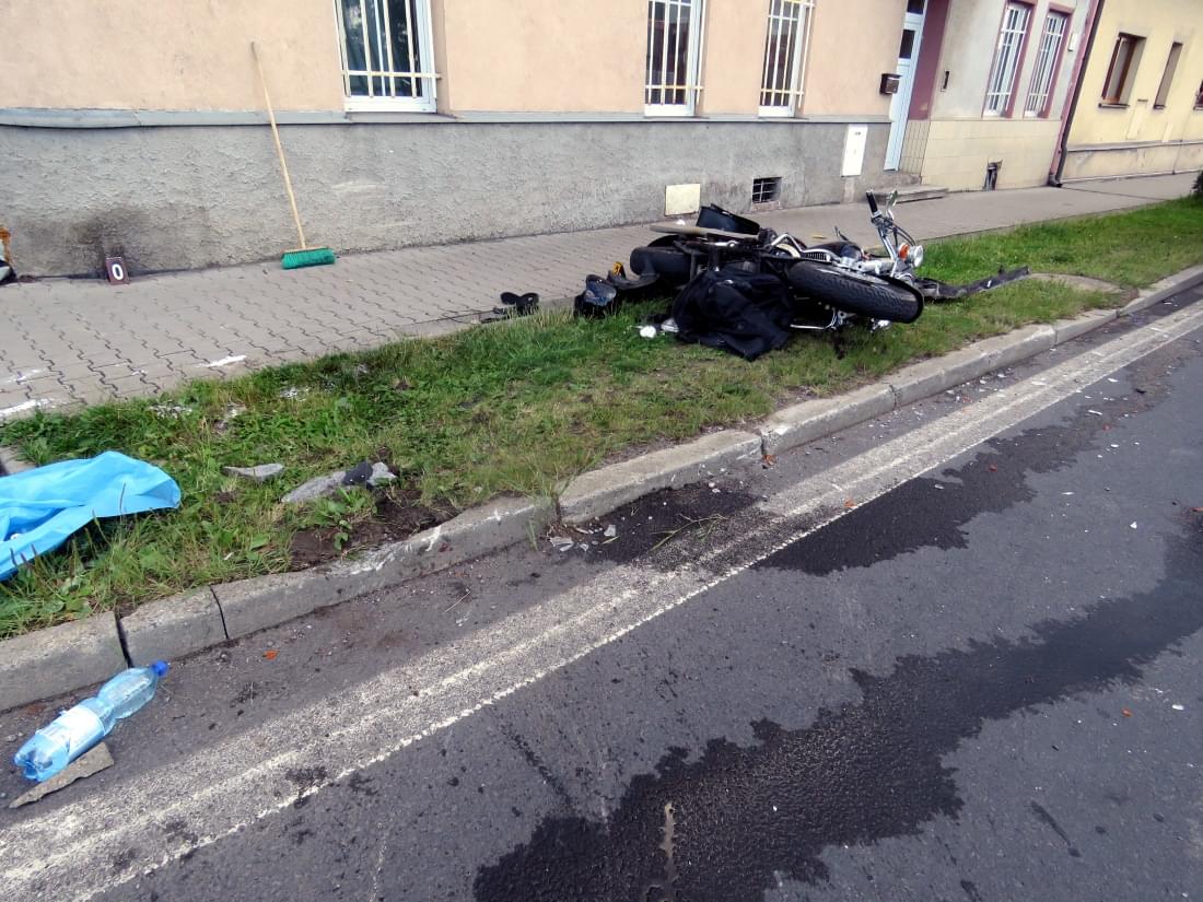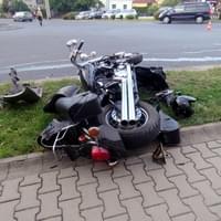 Osobní automobil narazil do motocyklu a motocyklistu doslova smetl.