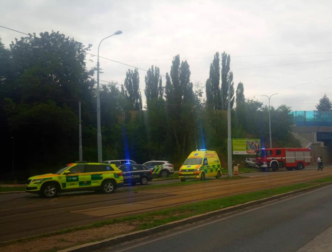 Provoz v místě nehody je ve směru do centra omezen, auta jsou vedena po tramvajovém pásu.