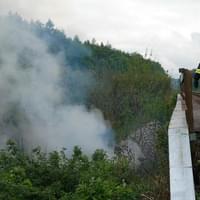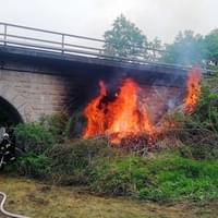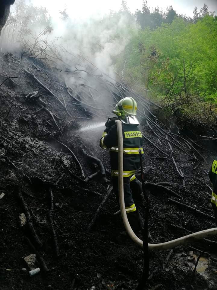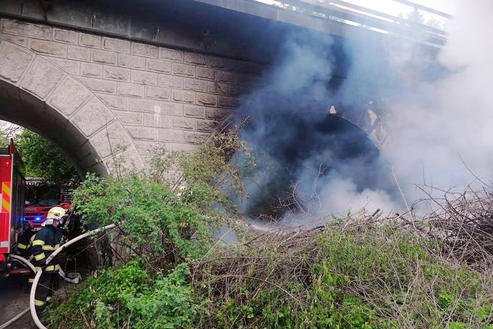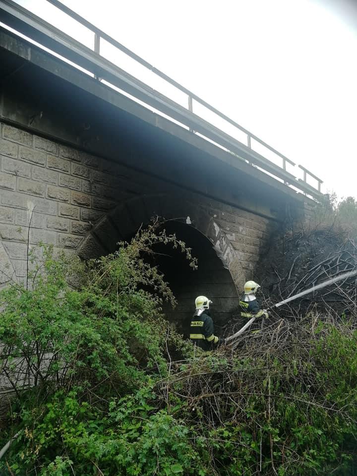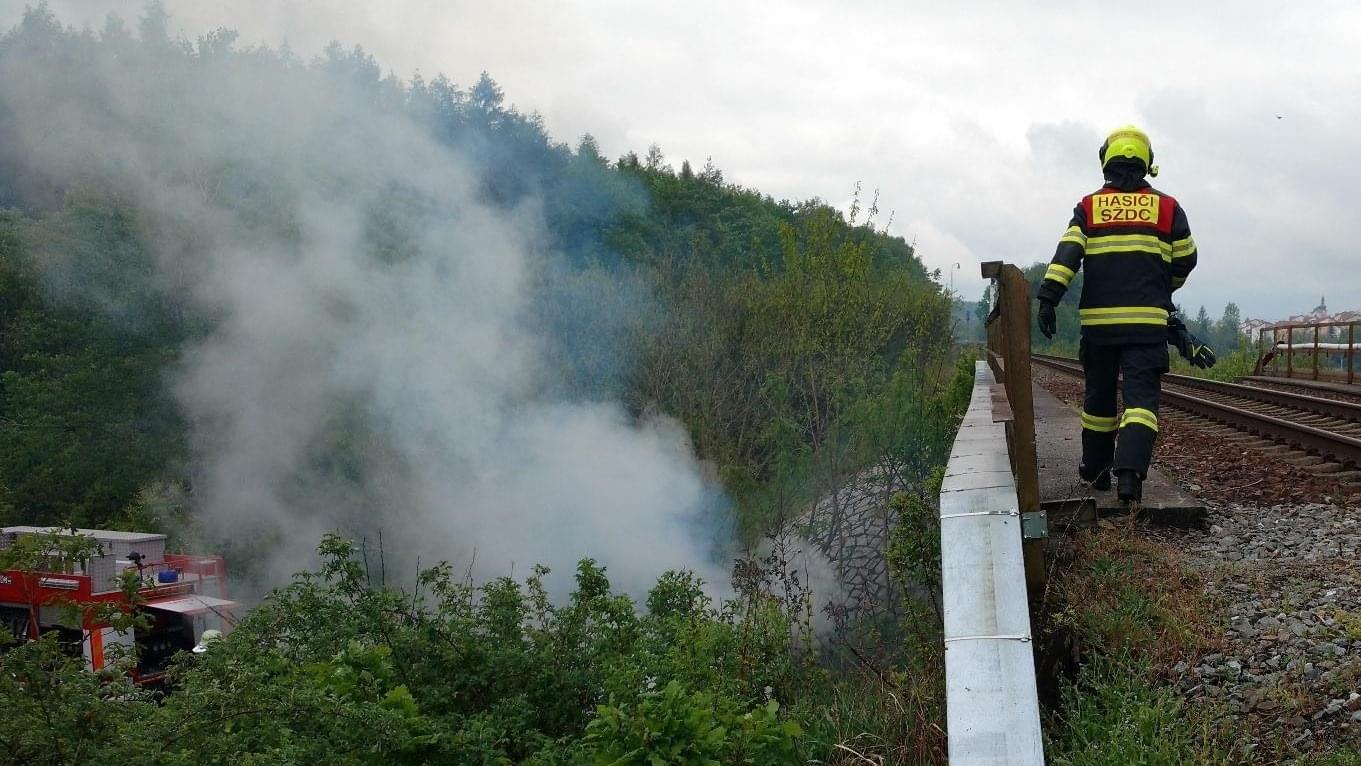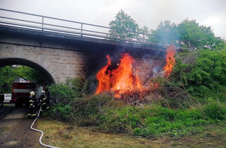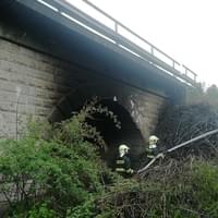 V sobotu 23. května vyjeli hasiči Správy železnic a hasiči z profeionálních i dobrovolných jednotek k viaduktu na konci Pekelného rybníka u Vejprnic, kde došlo k požáru klestí.