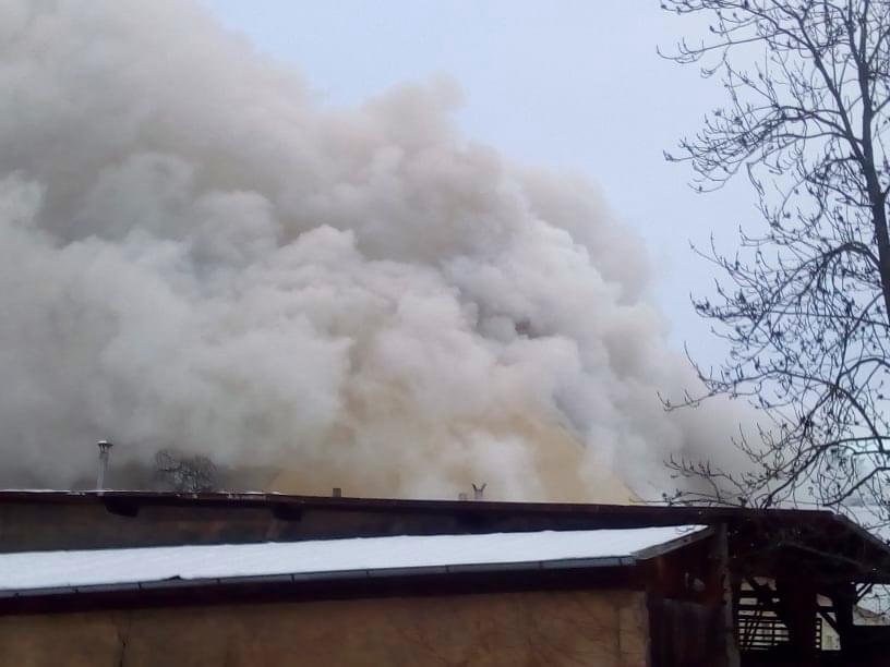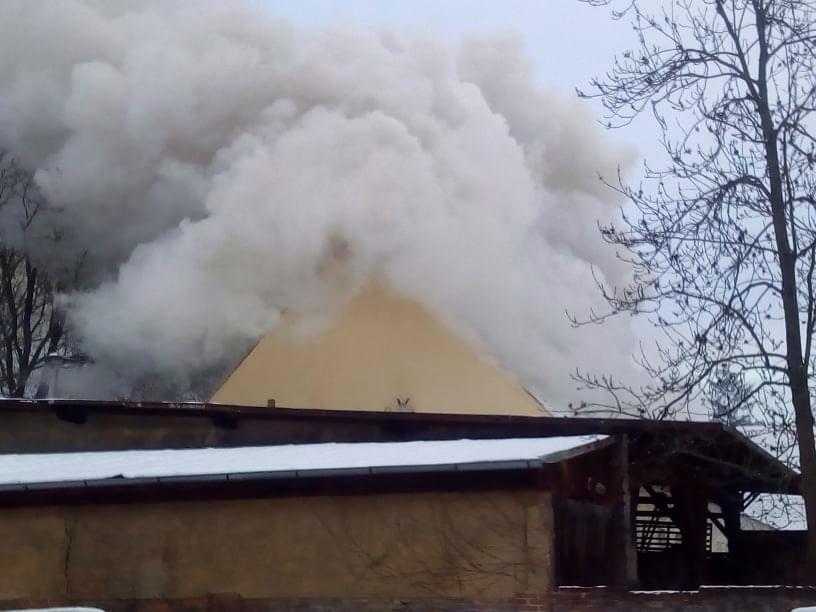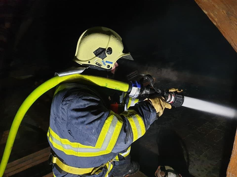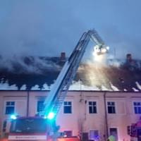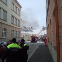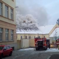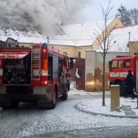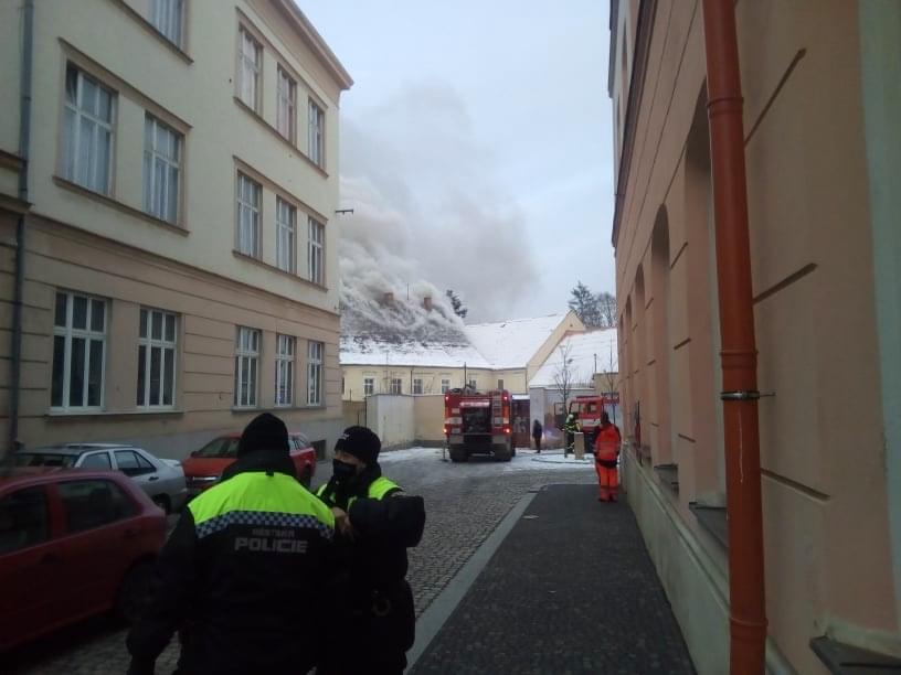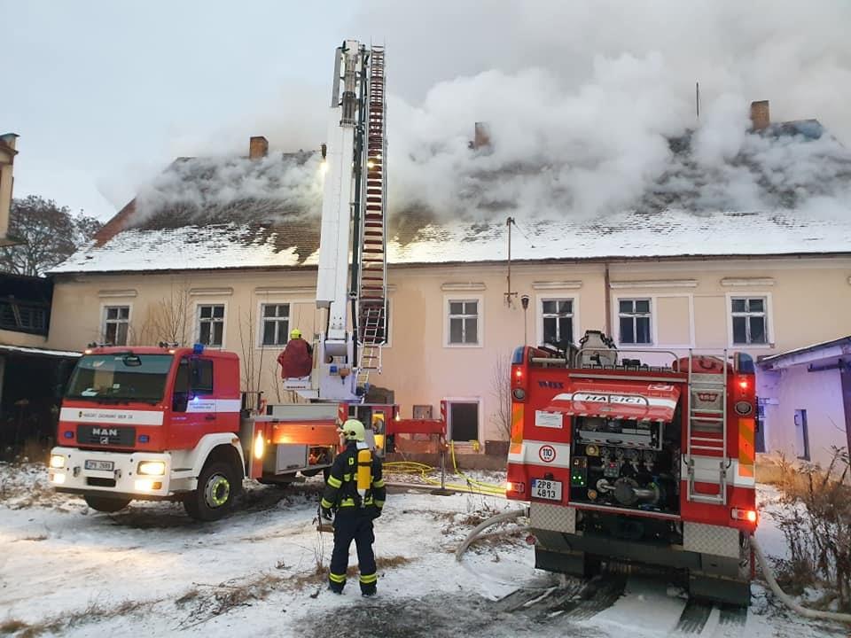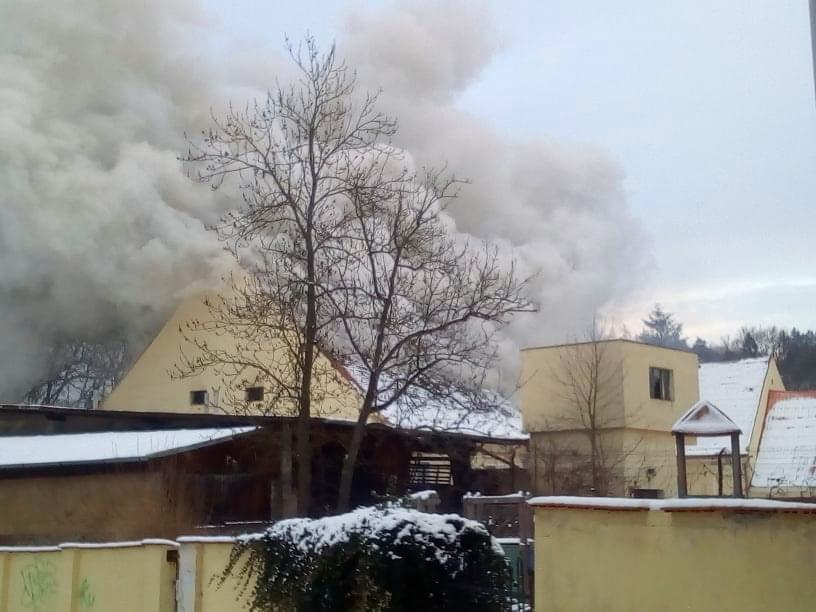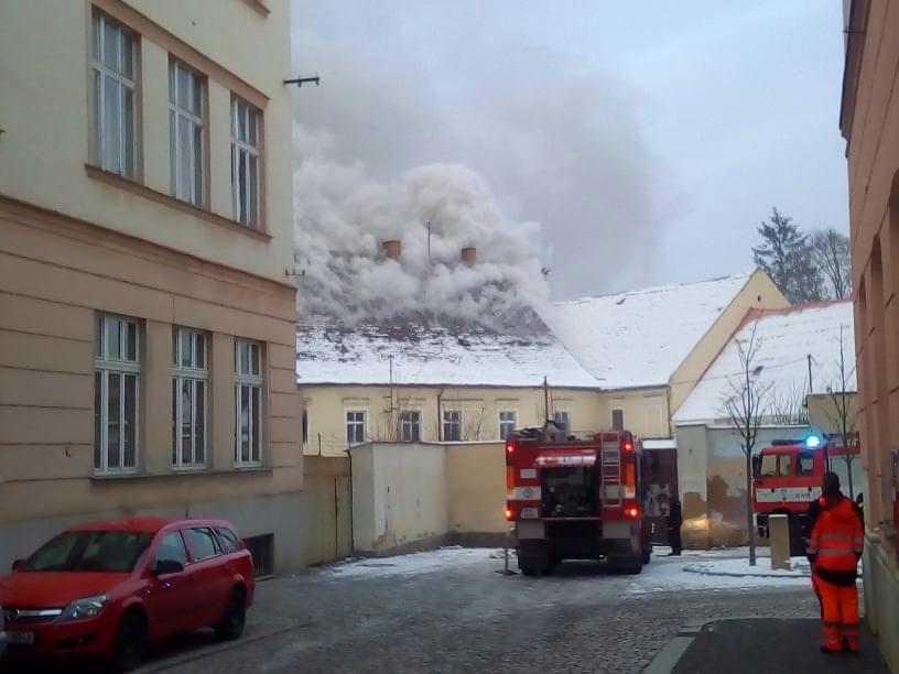 AKTUALIZACE: Kromě hašení museli hasiči provádět i průzkum, zda se v objektu nenachází nějaké osoby. Přítomnost osob byla po necelé hodině vyloučena. Momentálně se podařilo zpomalit šíření požáru. Hasiči otevřeli střešní konstrukci a na místo míří další výšková technika.