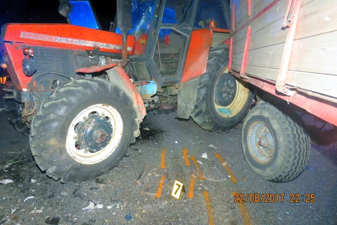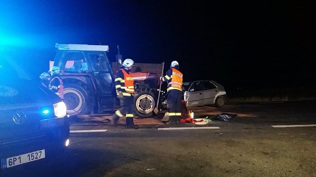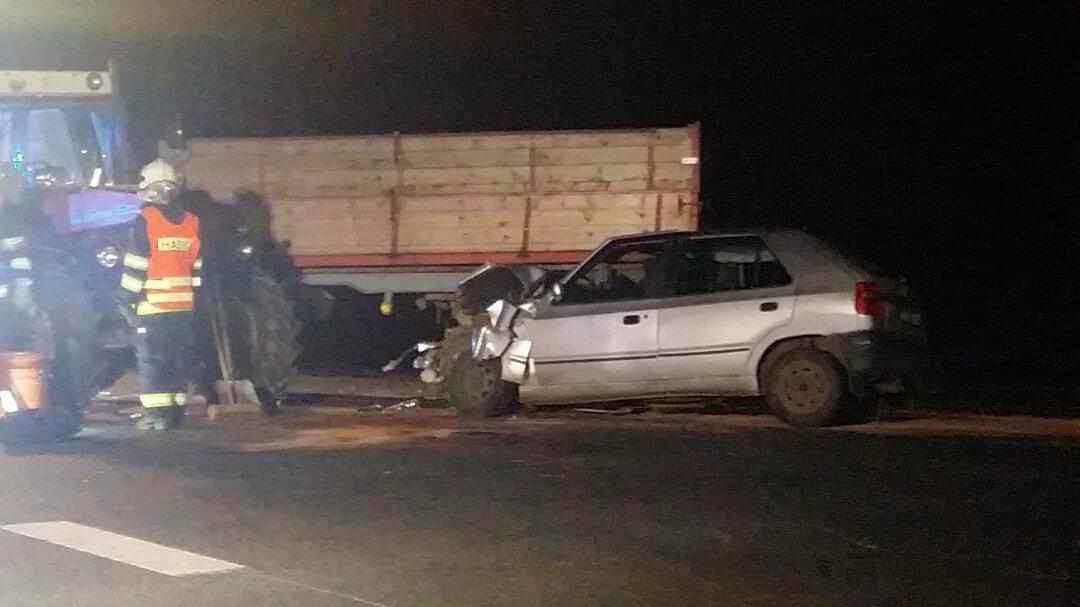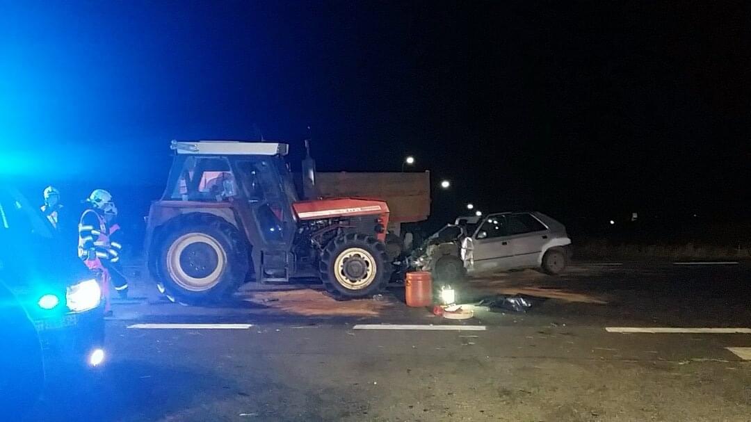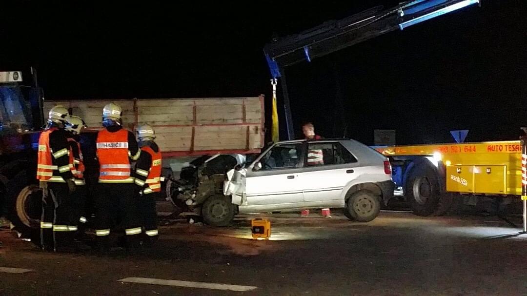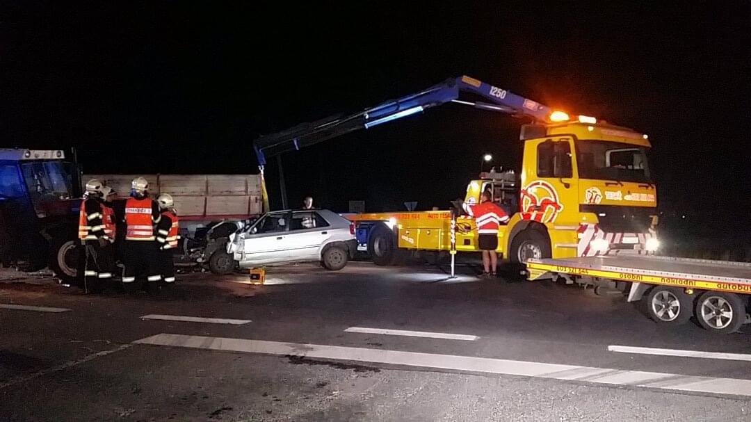 Policisté předběžně uvedli, že řidič traktoru nedal přednost osobnímu vozu, v kterém cestovalo pět osob.