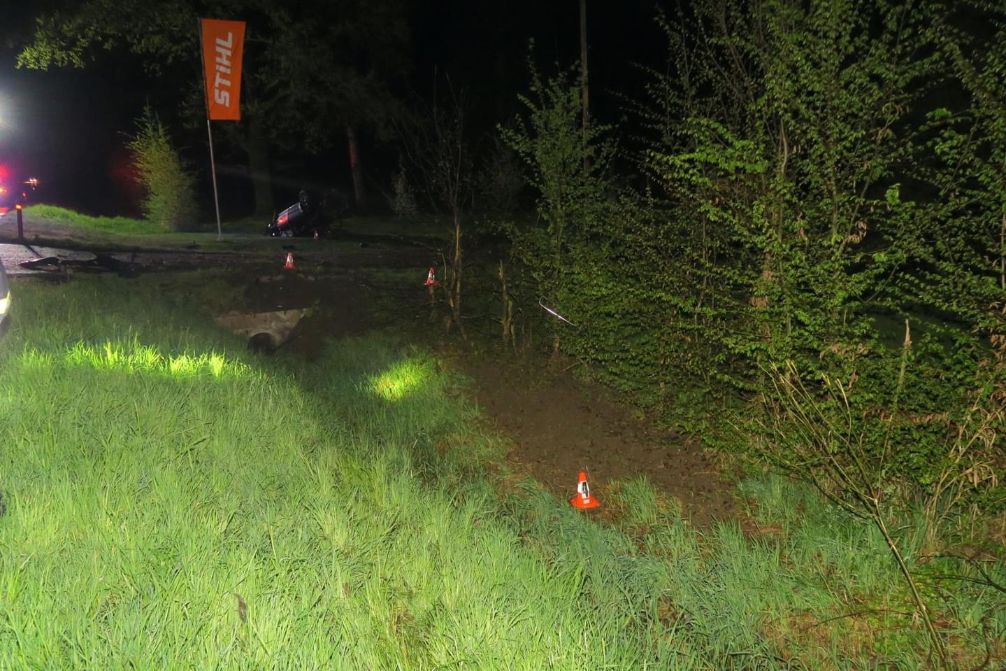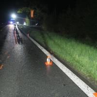 V noci na dnešek kolem půl desáté došlo k velmi vážné dopravní nehodě na silnici 22 mezi Domažlicemi a Klatovy, u odbočky na Kout na Šumavě. Osobní vozidlo vyletělo z vozovky, narazilo do stromů, rotovalo přes silniční můstek a nakonec zůstalo ležet na střeše na pozemku firmy Stihl. Protože z místa bylo hlášeno velmi vážné zranění a zaklínění mladého muže, vyjely k nehodě všechny záchranné složky a vzlétl i vrtulník LZS.
