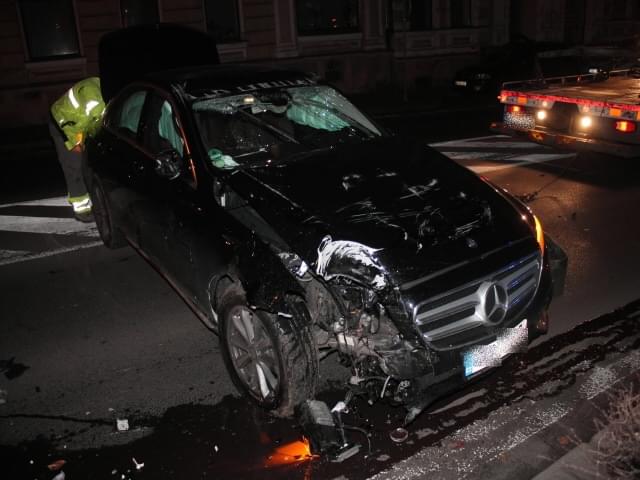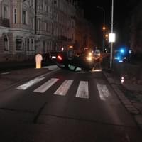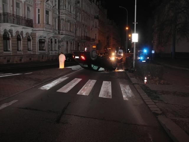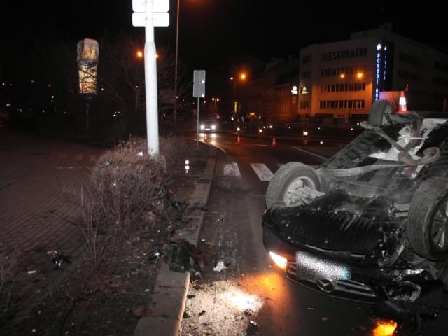 Následně přejel mimo komunikaci, kde najel na vyvýšený obrubník a narazil do sloupu veřejného osvětlení, který poškodil. Vlivem nárazu došlo k přetočení vozidla na střechu. I když se říká, že pod lampou je největší tma, v tomto případě to neplatilo, neboť lampa se nacházela přímo před Obvodním oddělením Policie.