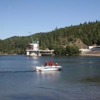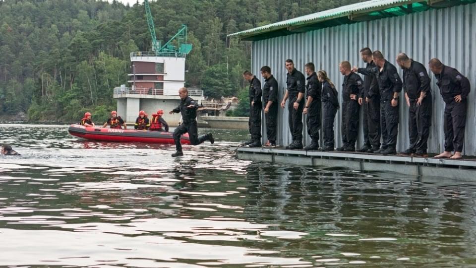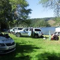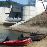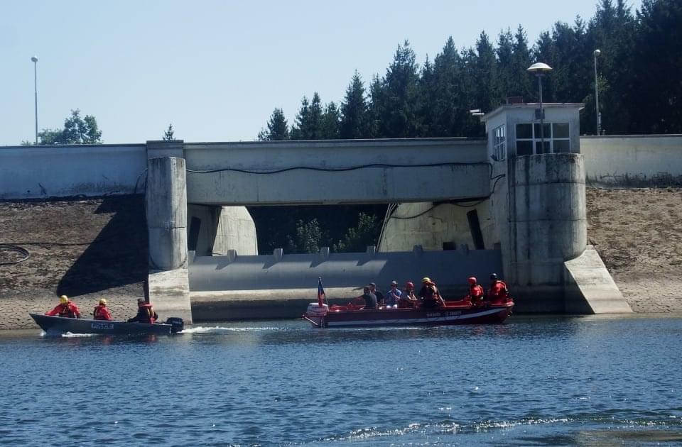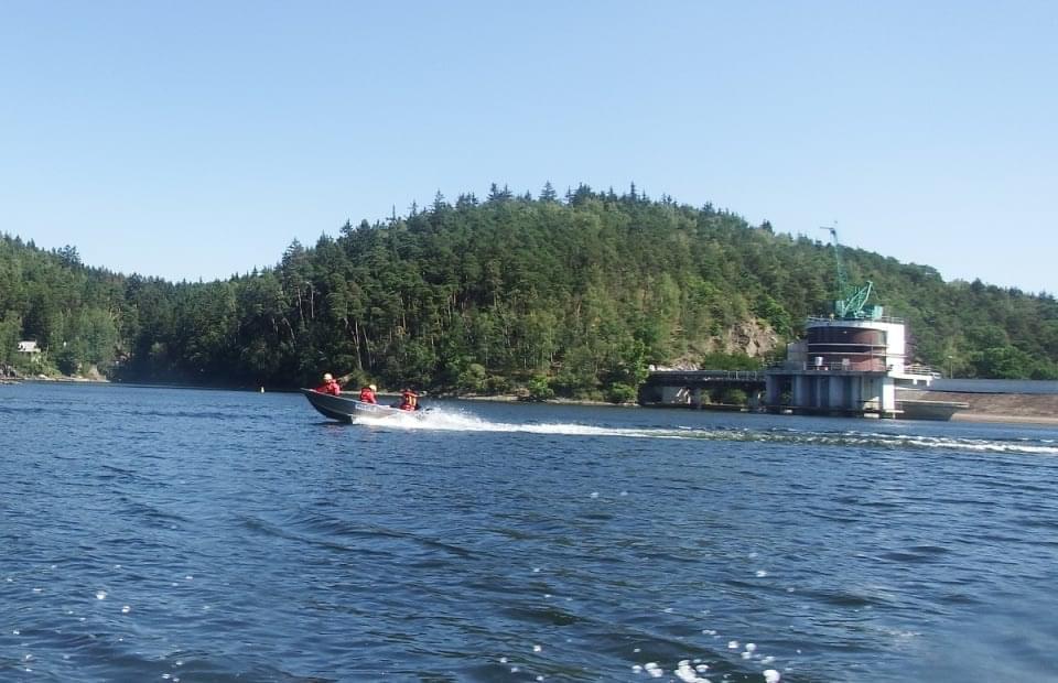 Již od rána na Hracholuské přehradě probíhalo rozsáhlé cvičení záchranných složek, kterého jsme se mohli účastnit i my a pozorovat práci policistů přímo na člunu.