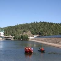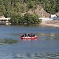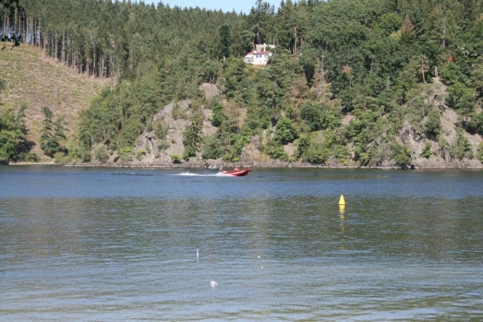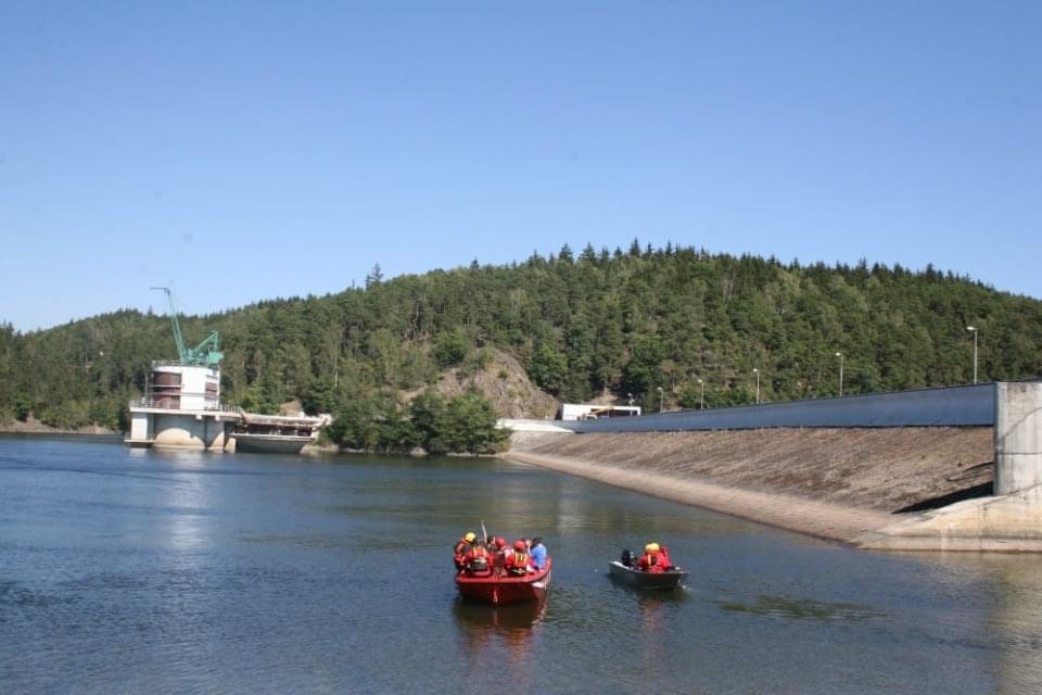 Všechny čluny se rozlétly po hladině, nebyli jsme tu jen my, ale i hasiči a vodní záchranná služba a sešli jsme se na vodě přibližně uprostřed přehrady kousek od hráze.