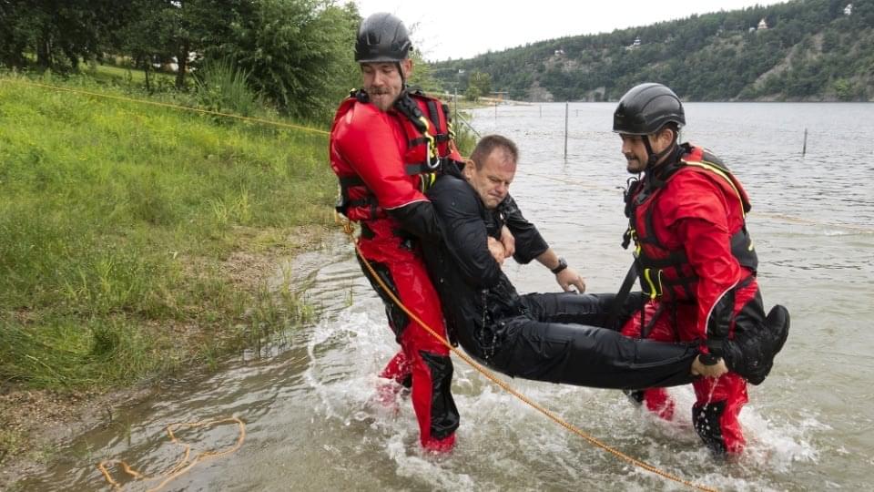 Lidé kteří podcenili své síly během plavání, lidé se topící i lidé již v bezvědomí – to vše musely dnes řešit záchranné složky při velkém součinnostním cvičení na Hracholuské přehradě.