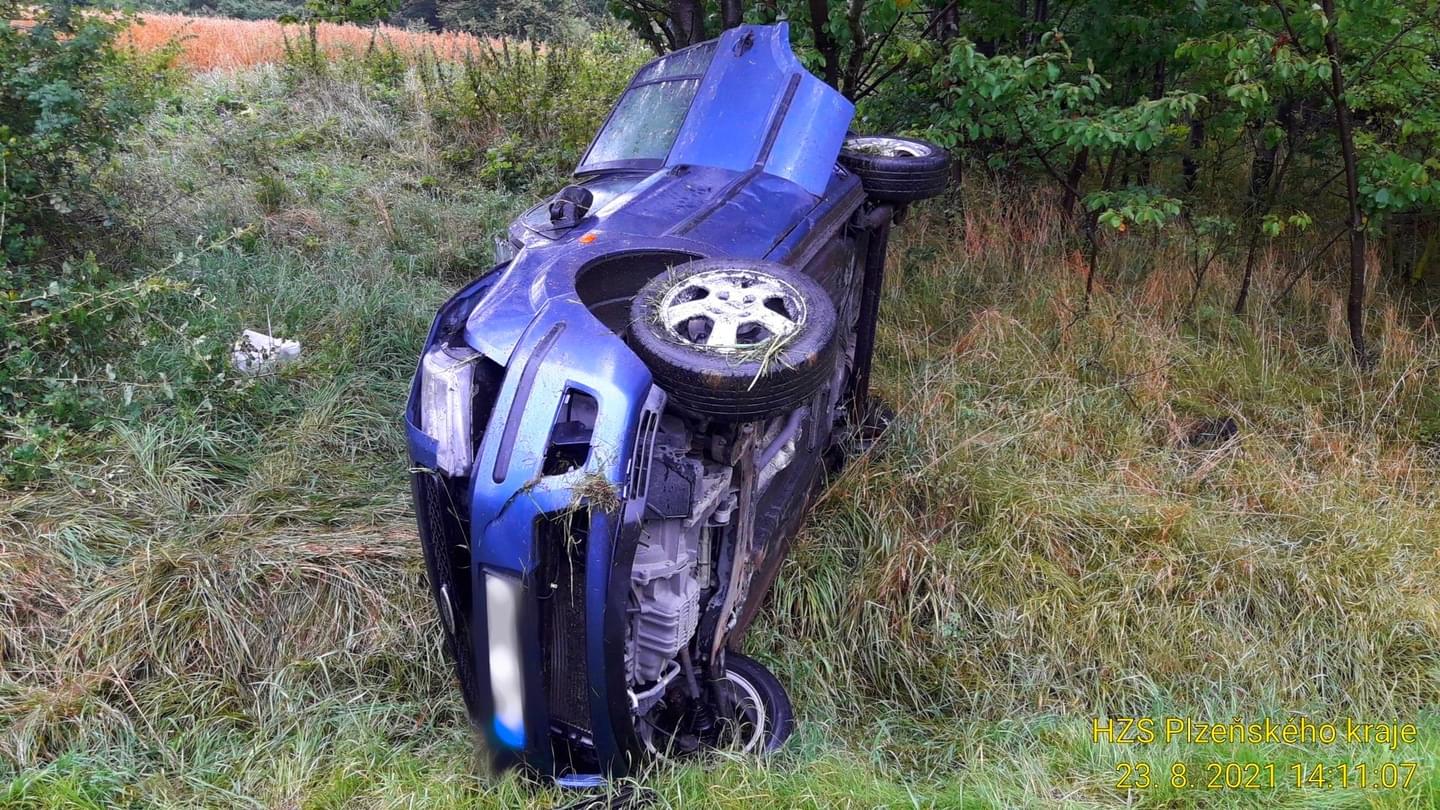 Dnes před druhou hodinou odpoledne došlo na silnici mezi Borem a Horšovským Týnem u obce Vidice k havárii osobního vozu Ford do příkopu, kde zůstal ležet na boku. Protože z místa bylo hlášeno několik zraněných, k nehodě vyjely všechny záchranné složky. Hasiči zajistili místo události a provedli protipožární opatření, záchranáři si do péče převzali dva zraněné. "Z místa dopravní nehody jsme transportovali ženu narozenou v roce 1990 a muže narozeného v roce 1988 s lehkými zraněními do Domažlické nemocnice," uvedli záchranáři.
