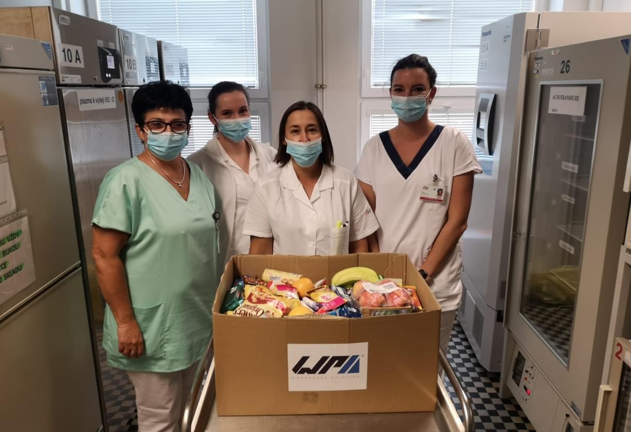 Je nám velkou ctí, že na tuto výzvu jako první zareagoval náš partner Jiří Heckel. Jeho firma Workpress Aviation okamžitě uvolnila čtyřicet pět tisíc korun na nákup čerstvého ovoce, džusů, energetických nápojů, sušenek, čokoládových či energetických tyčinek a dalších laskomin. Téměř dvě desítky velkých beden byly dnes rozvezeny zdravotnickému personálu ve Fakultní nemocnici v Plzni na Borech, Lochotíně i do transfuzní stanice, kde mají posloužit unavenému a přepracovanému personálu k doplnění energie.