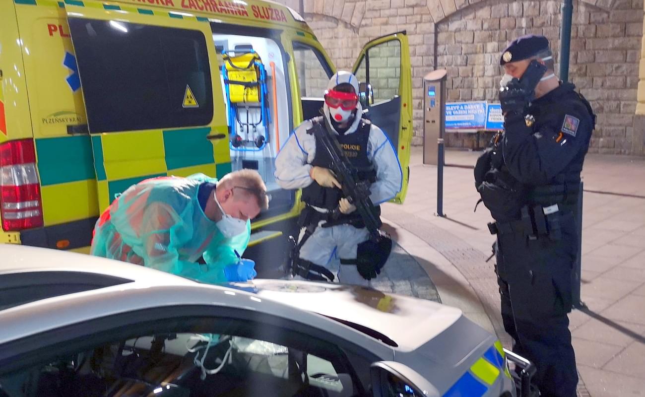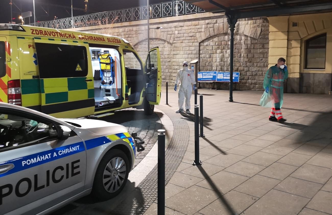 Na plzeňské nádraží vyjely všechny záchranné složky a začaly přípravy na zásah v potenciálně kontaminovaném prostředí. Drážní hasiči, záchranáři i policisté na vlak čekali oblečeni v jednorázových oblecích, ochranných maskách a v prostoru před nádražím bylo zřízeno improvizované dekontaminační stanoviště Hasičů SŽ.