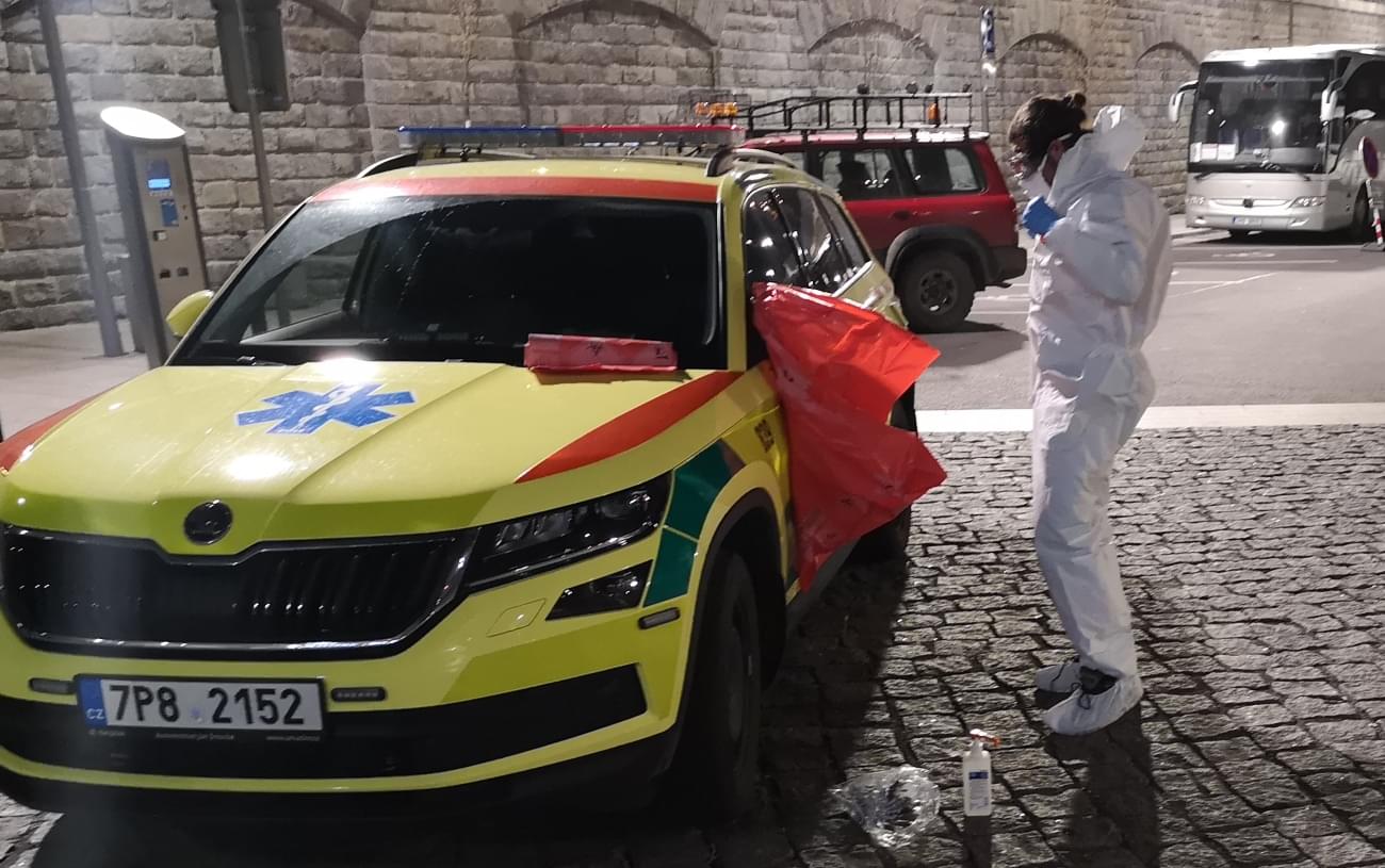 Po příjezdu vlaku si ženu cestující ve vagonu číslo 4, u které podezření na onemocnění Covid-19 vzniklo, převzali do péče záchranáři a v ochranných oblecích jí odvedli do sanitky speciálně označené jako Biohazard.