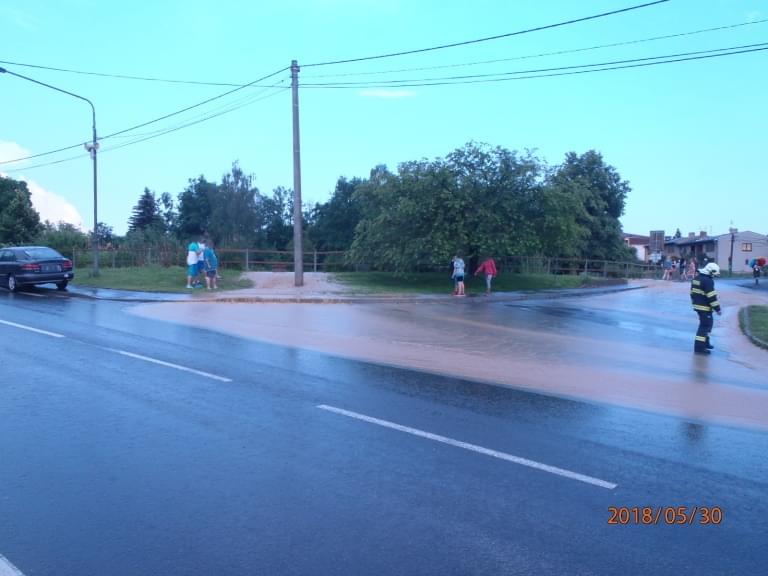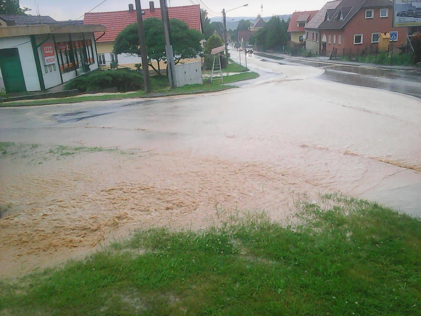 Hasiči ze stanic Domažlice, SDH Domažlice a SDH Draženov vyjeli včera kolem půl osmé večer do Draženova, kde voda a bahno z okolních polí naplnily místní rybník, který přetekl a voda s bahnem zaplavila ulice i sklepy domů.