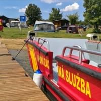 Záchranáři tu sídlí na stanici v kempu Keramika, mají zde perfektně vybavenou ošetřovnu, čeká zde na výjezd připravená sanitka a na vodě se pohupují motorové čluny se sonary.